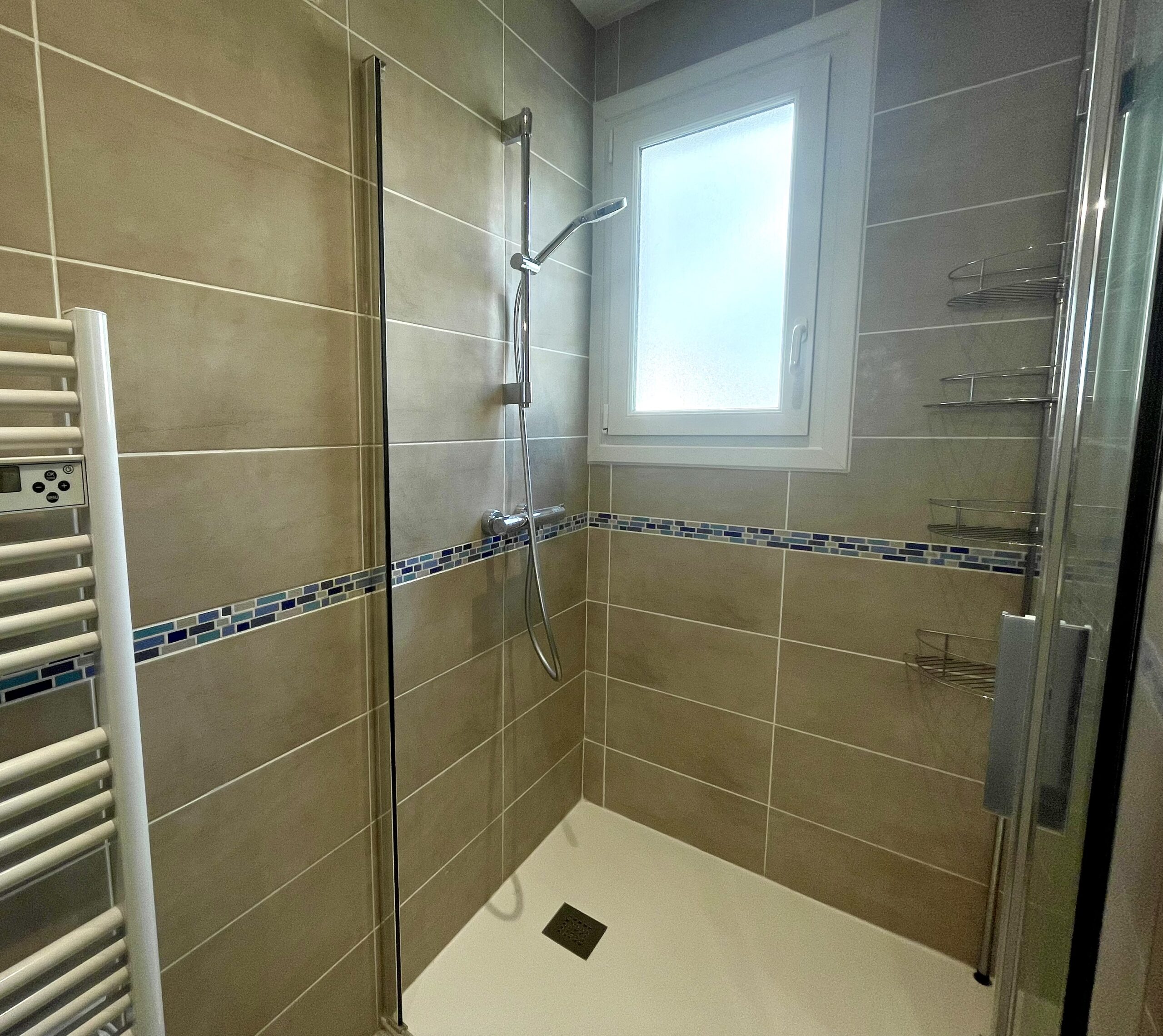 Un dégagement dessert la salle d’eau (meuble vasque et douche) et un WC séparé.