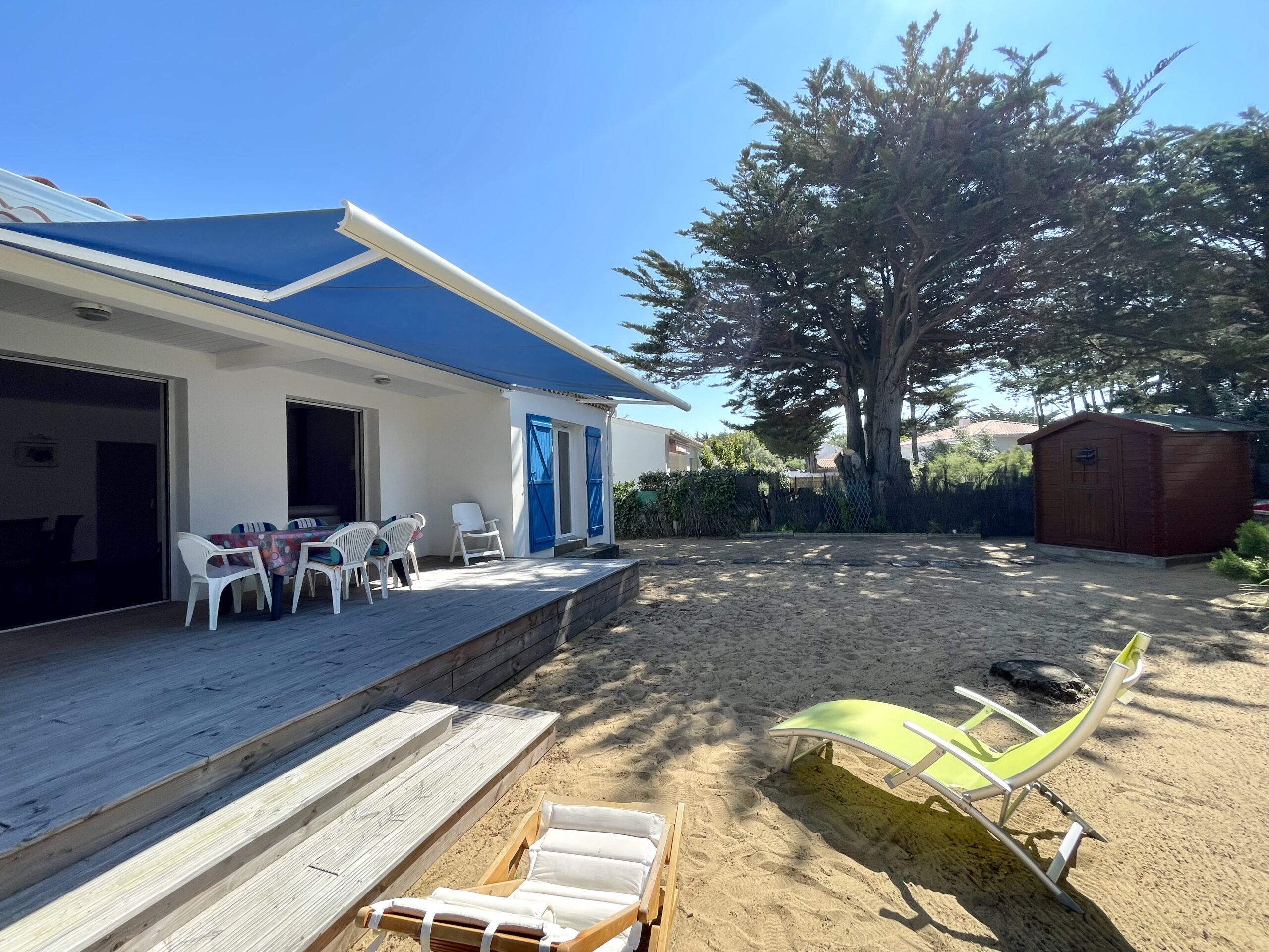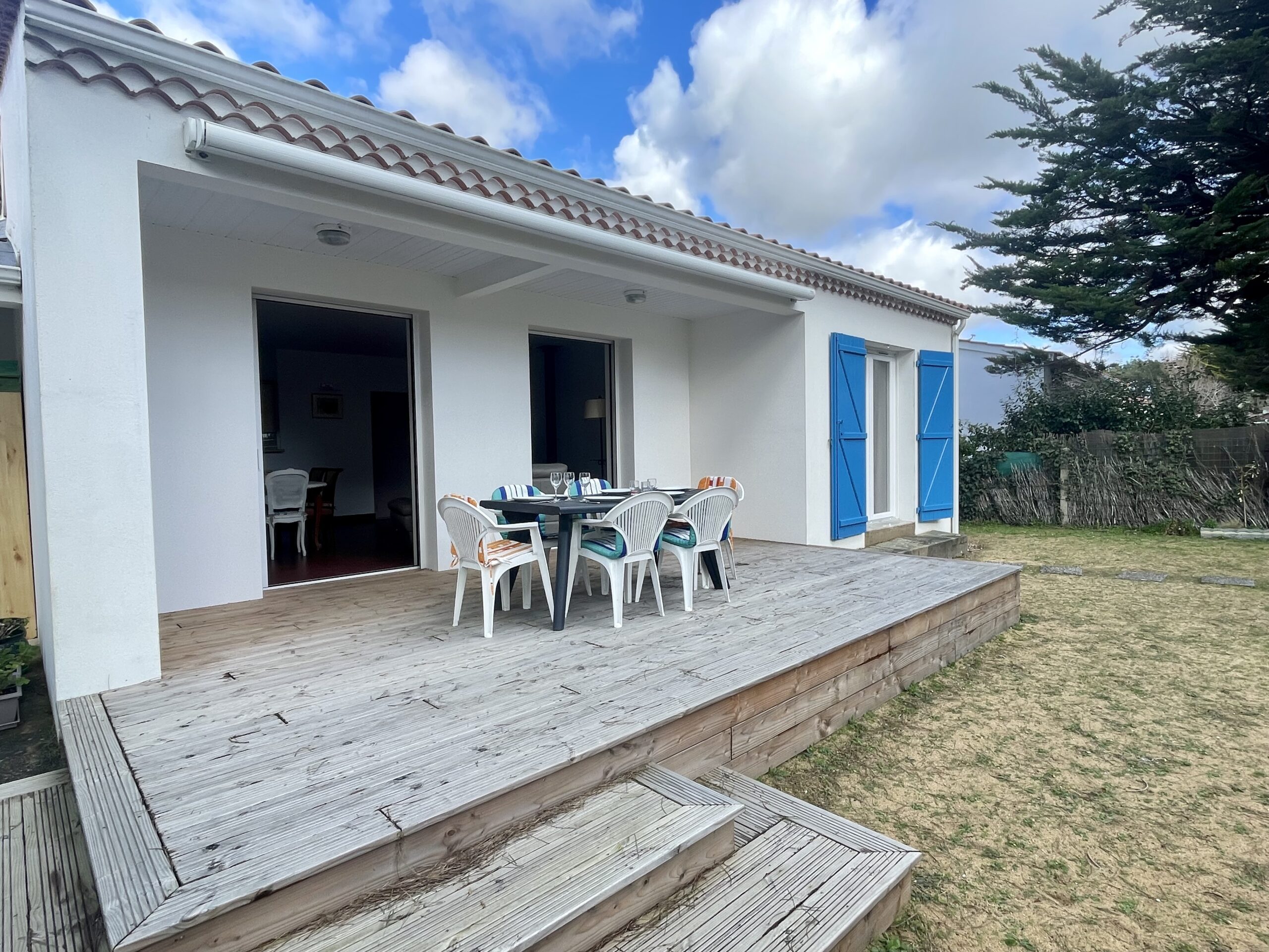 Cette maison offre de beaux volumes pour des vacances confortables; vous apprécierez tout particulièrement le jardin et sa terrasse en bois semi-couverte pour prendre vos repas ainsi que la proximité du bord de mer de de la piste cyclable.