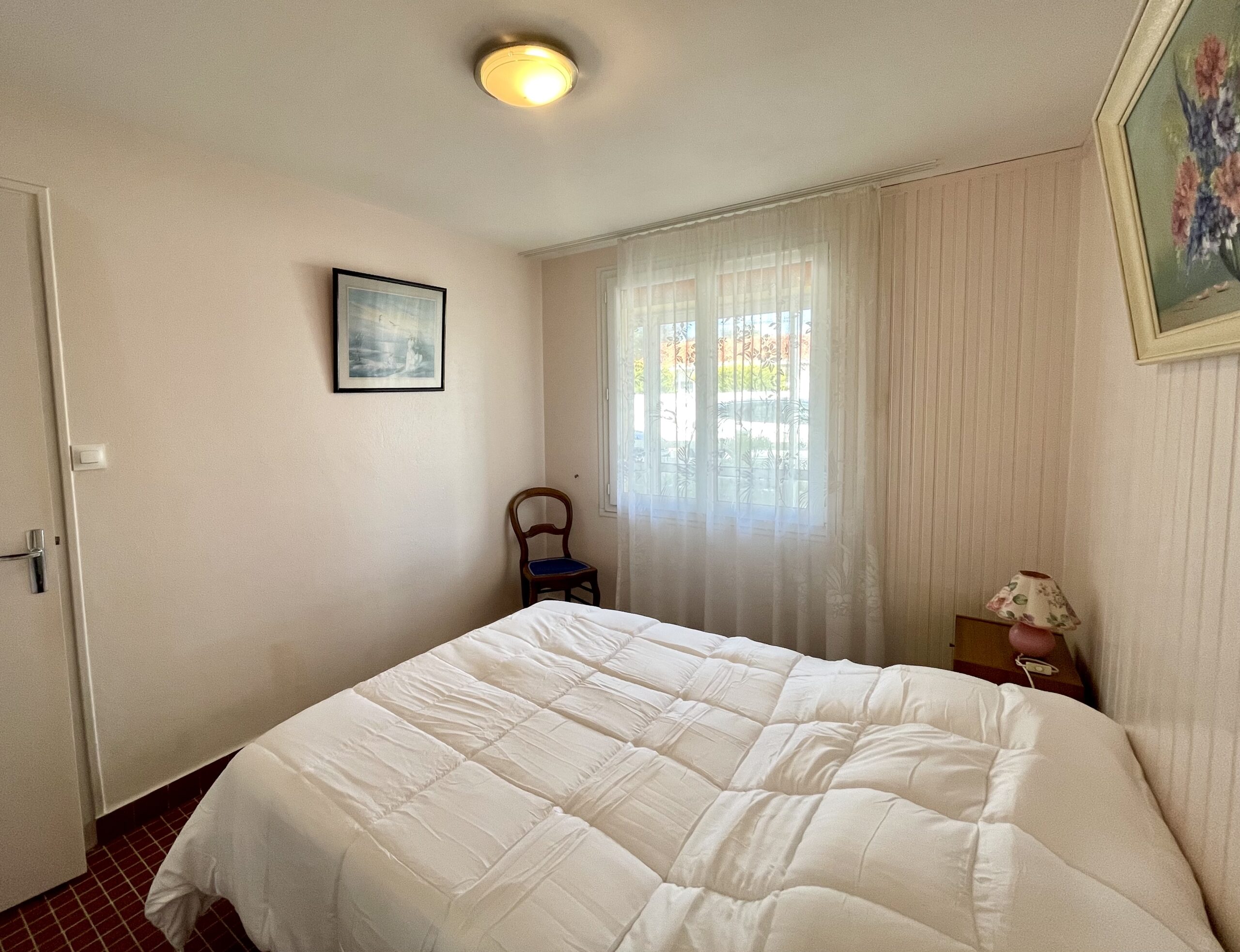 A seulement 200m du bord de mer, au sein d’une résidence construite dans les années 60, cet appartement pour 4 personnes est situé au rez-de-chaussée.