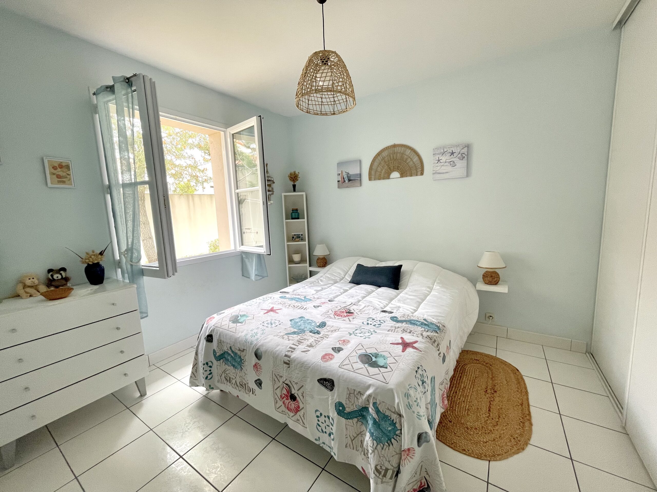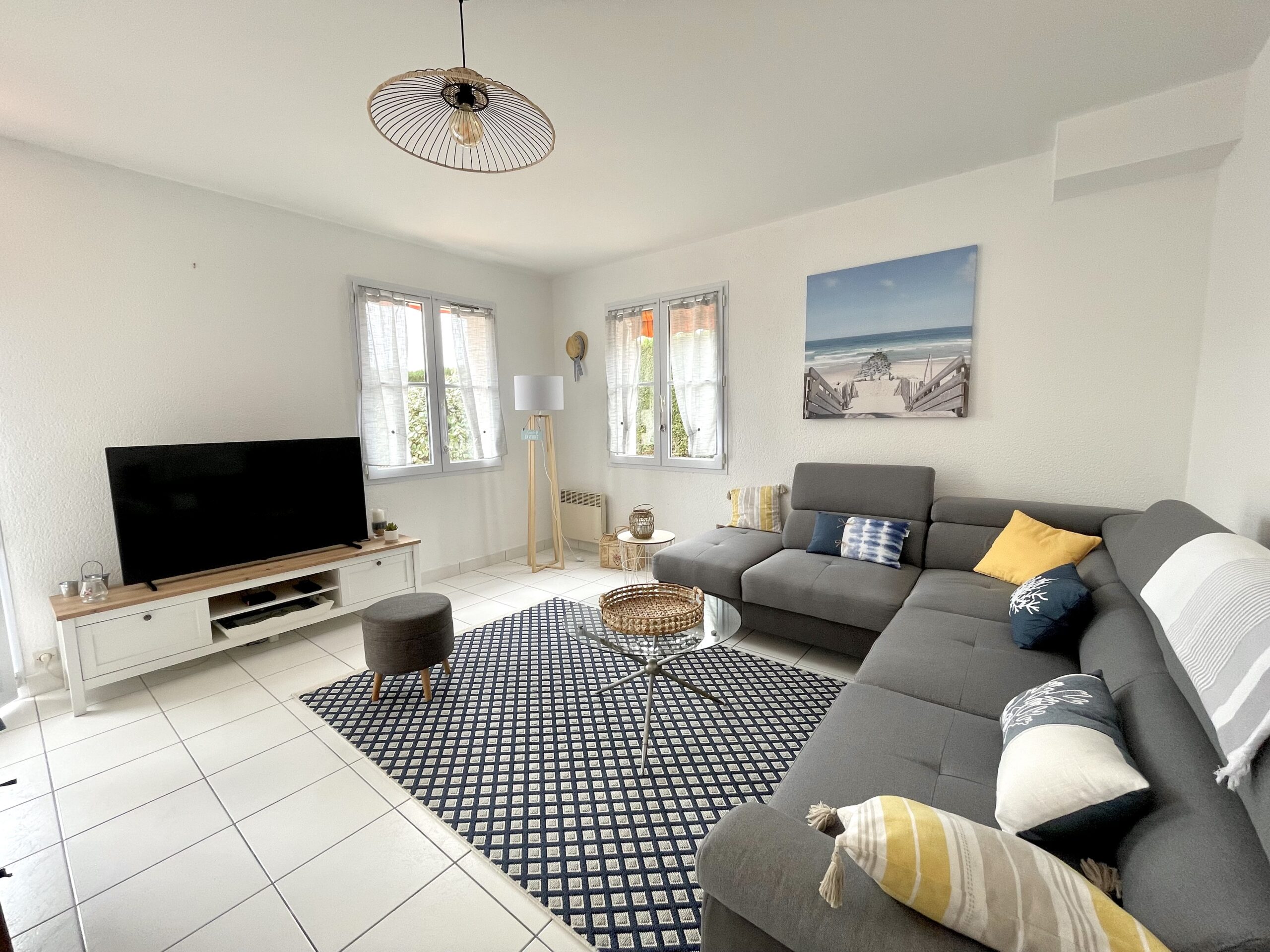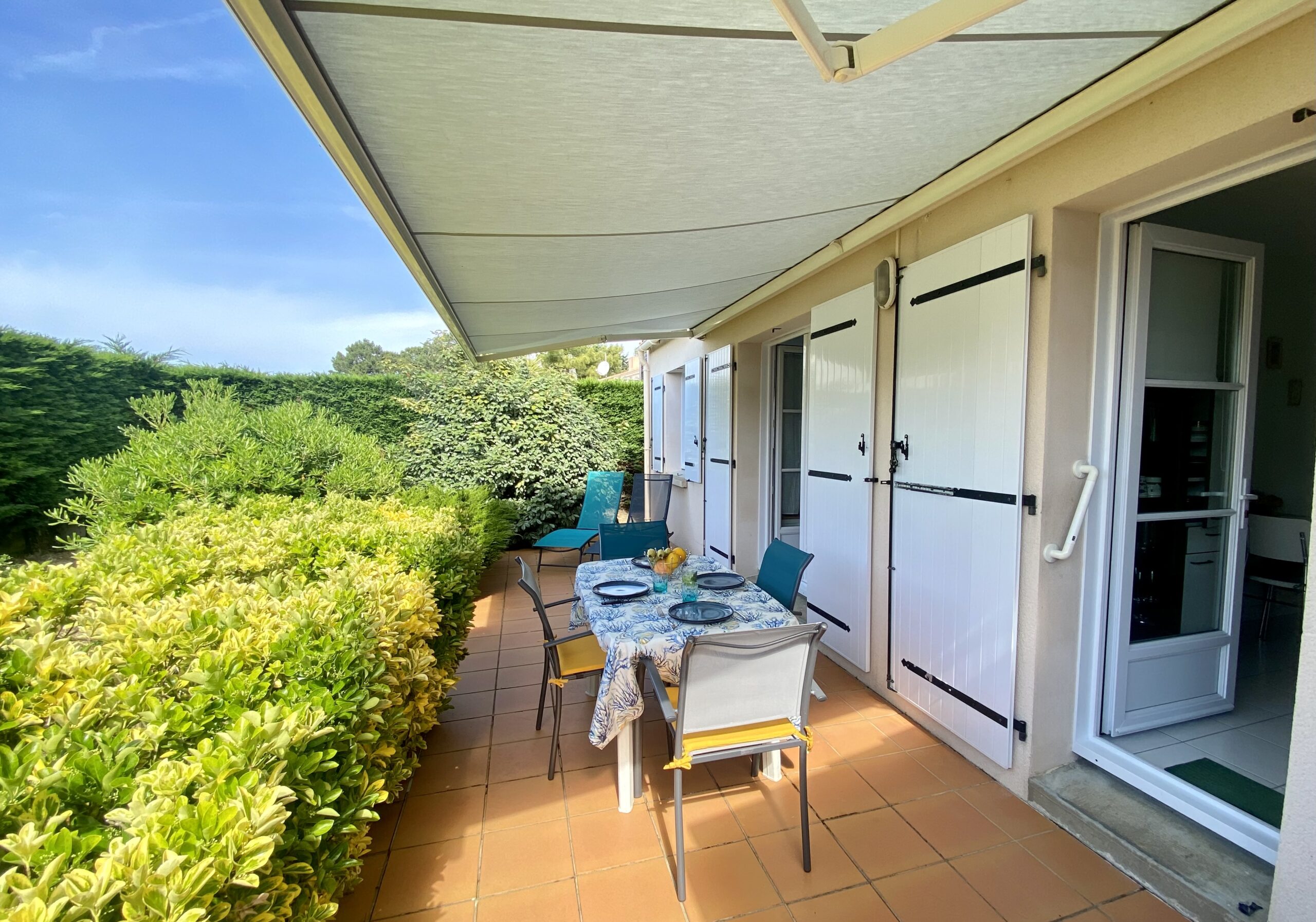 Vous apprécierez: l’emplacement de la maison au calme d’un quartier résidentiel, à proximité d’un chemin piéton qui mène au bord de mer mais aussi la belle terrasse expo sud pour prendre vos repas à l’extérieur.