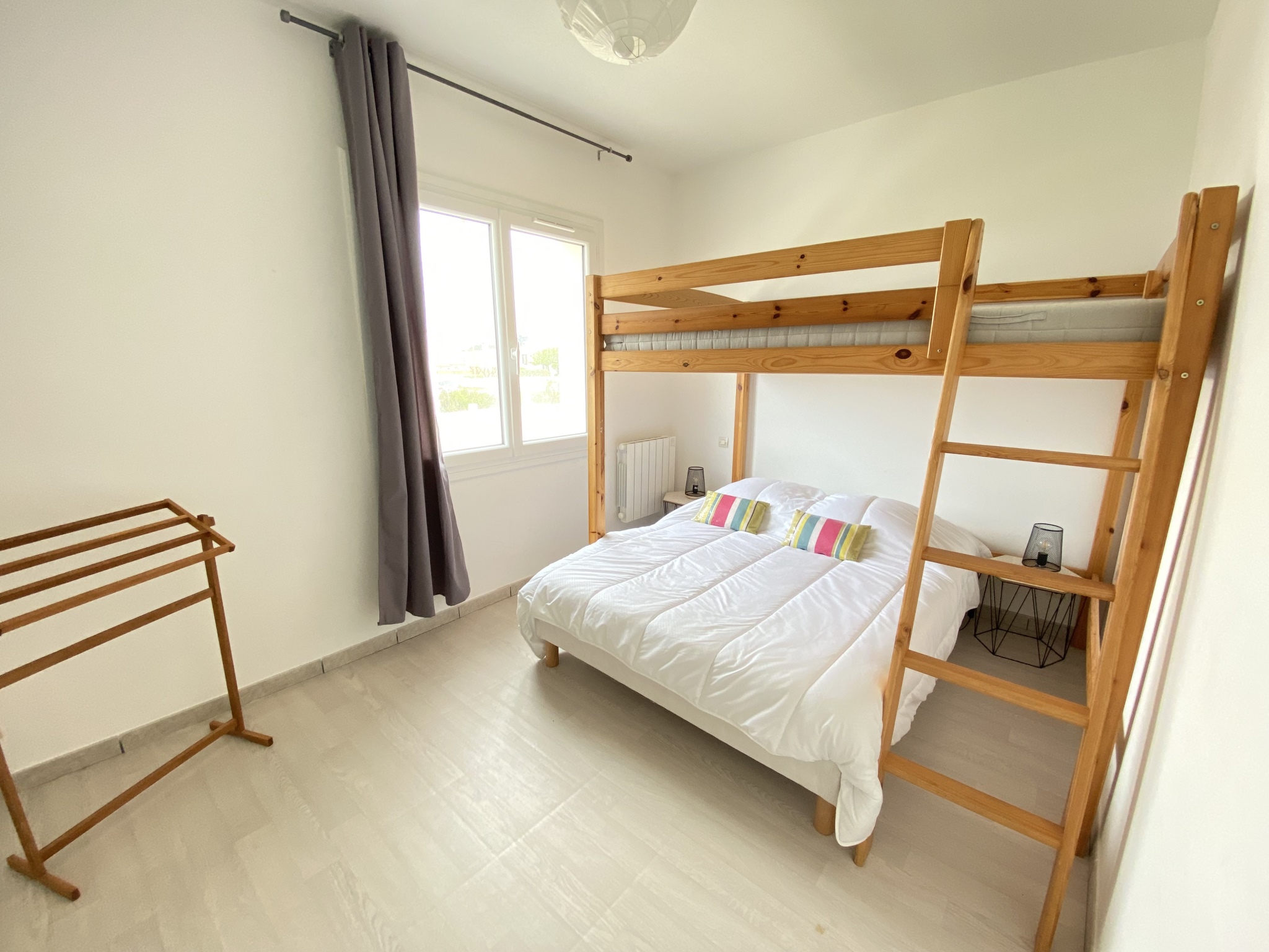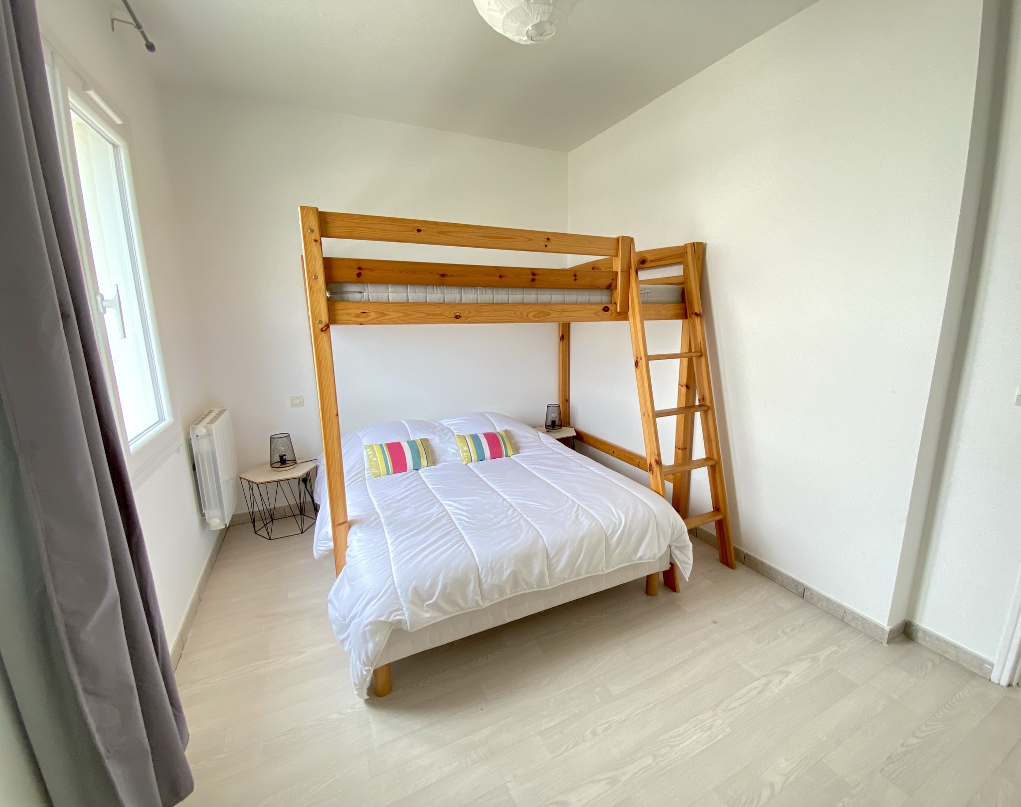 Une grande chambre avec un lit mezzanine (1x 140 en bas + 1 x140 en haut) + placards.