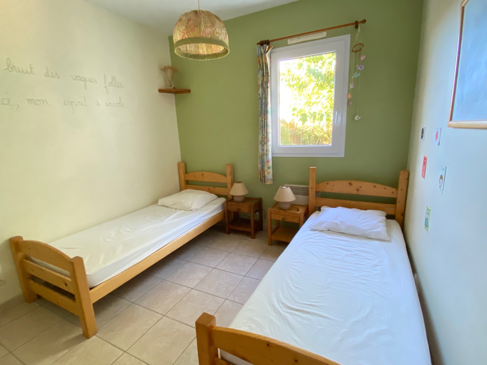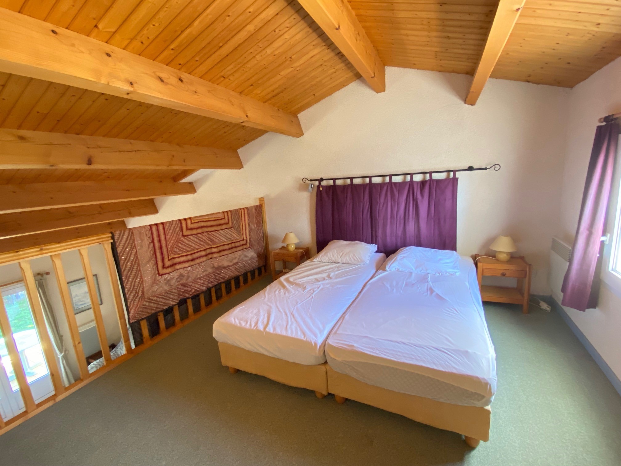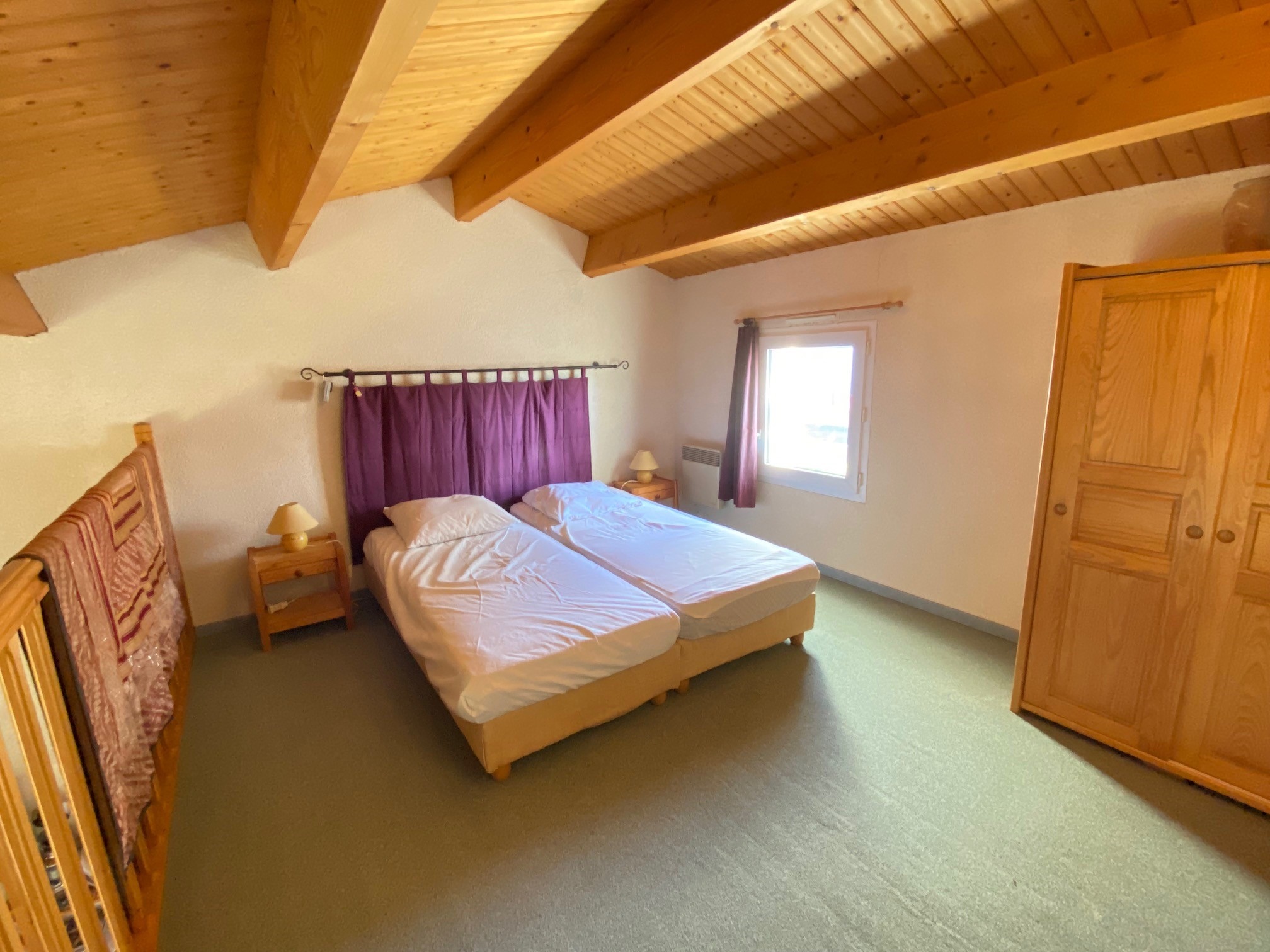 En mezzanine (ouverte sur le séjour), un espace nuit avec 2 lits de 90 cm.