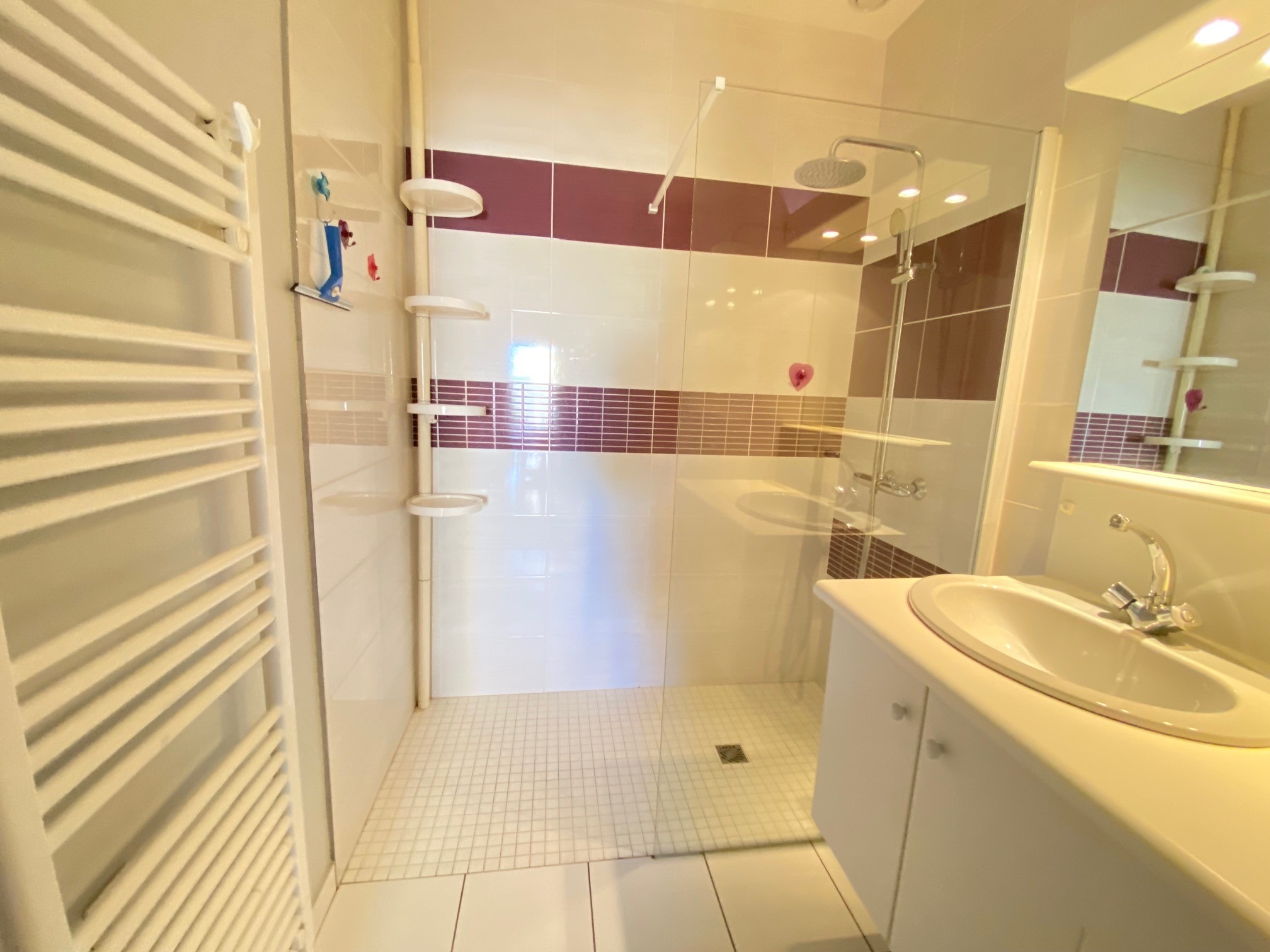 Un jardin clos avec terrasse (store banne, mobilier de jardin, transats et barbecue en dur), garage à usage de local à vélo (avec lave-linge).