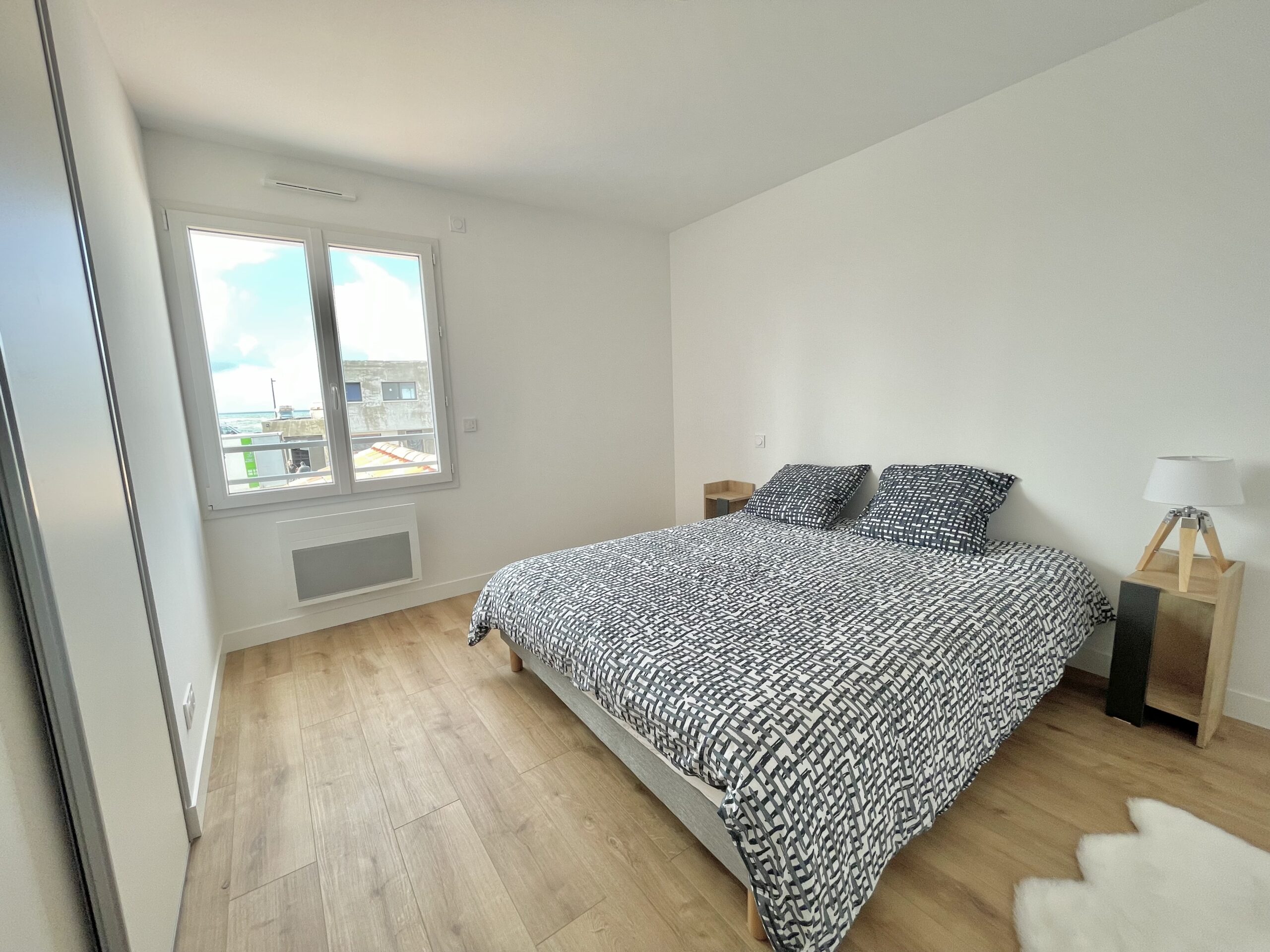 Chambre n° 2: un lit double (160 x 200) + placard. Vous profiterez d’une belle vue mer depuis cette chambre.