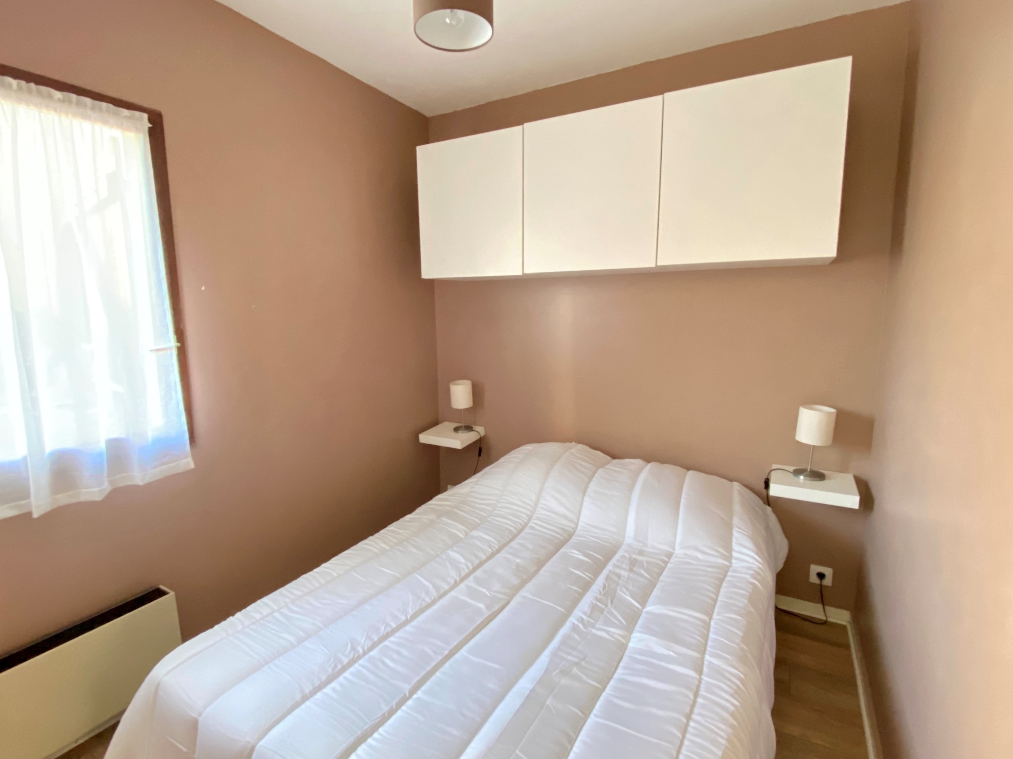 Dans la loggia fermée, un salon de jardin à disposition (table, chaises). Jardinet clos. Parking privatif.