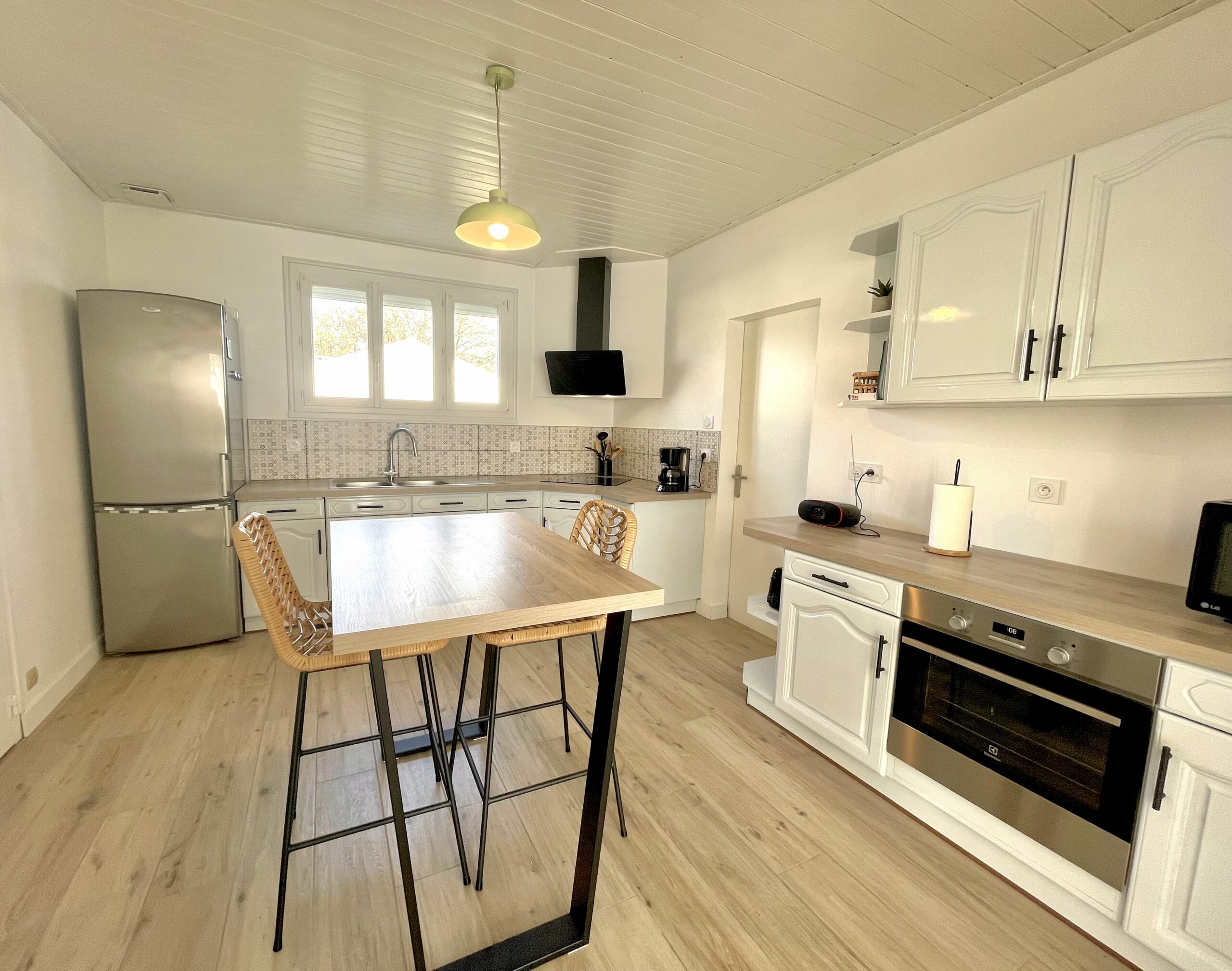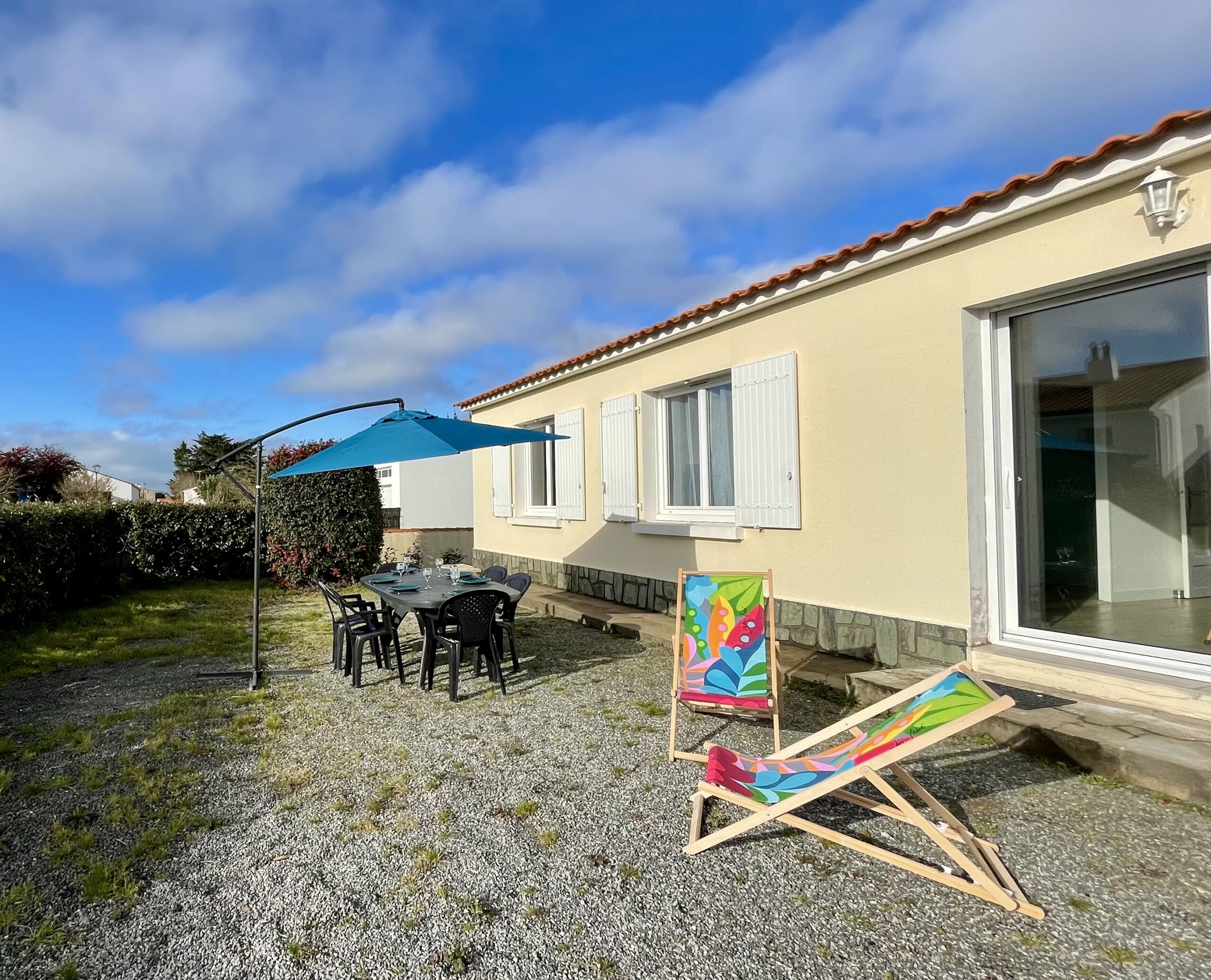 Idéalement située à 400m du coeur de bourg de Brétignolles Sur Mer avec ses commerces, halles et marché bi-hebdomadaire, agréable maison de pays de plain pied récemment rénovée.