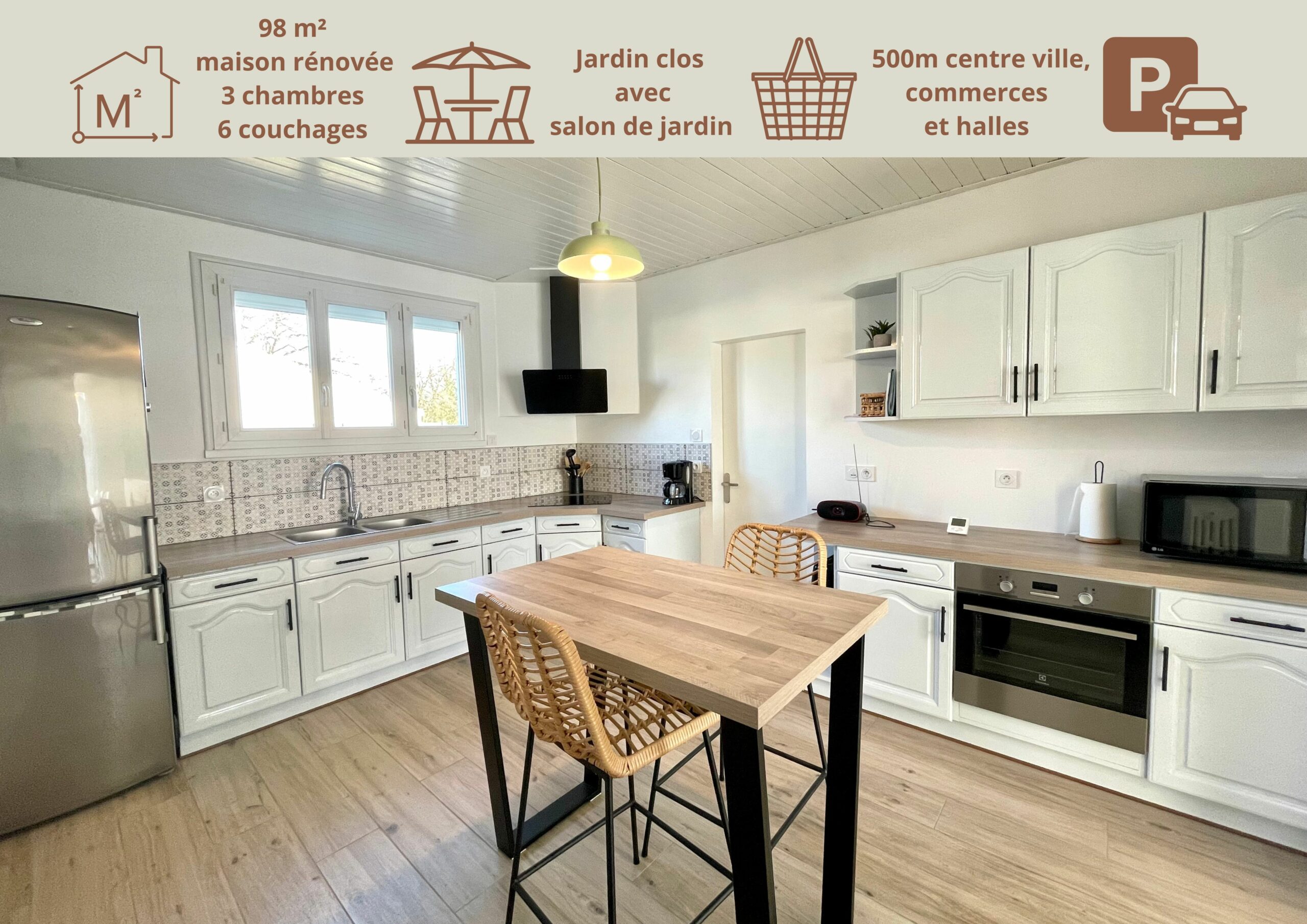 – la localisation de la maison à seulement 400m du coeur de bourg avec ses commerces, halles et un des plus grands marchés de la région (les jeudis et dimanches toute l’année).