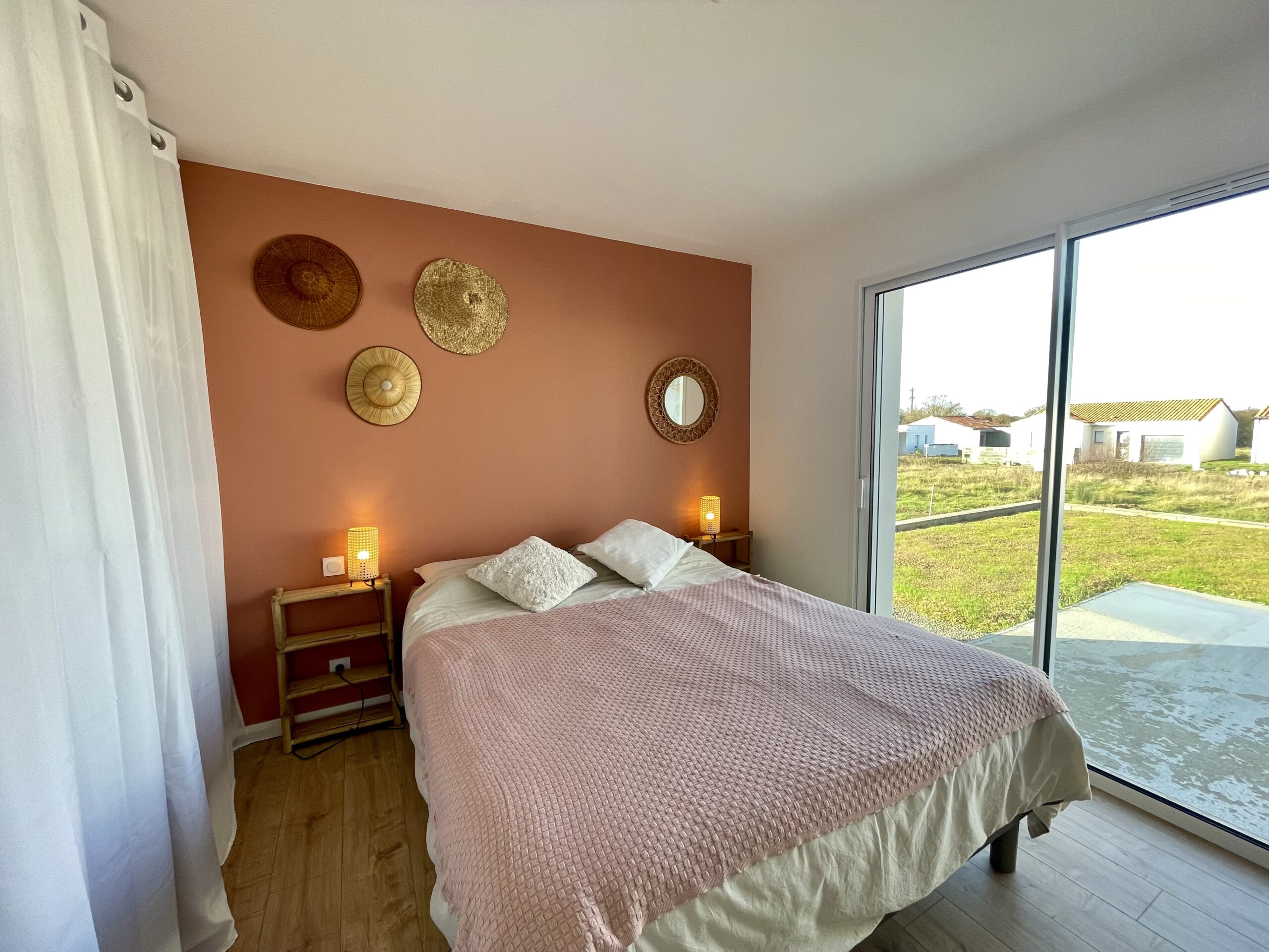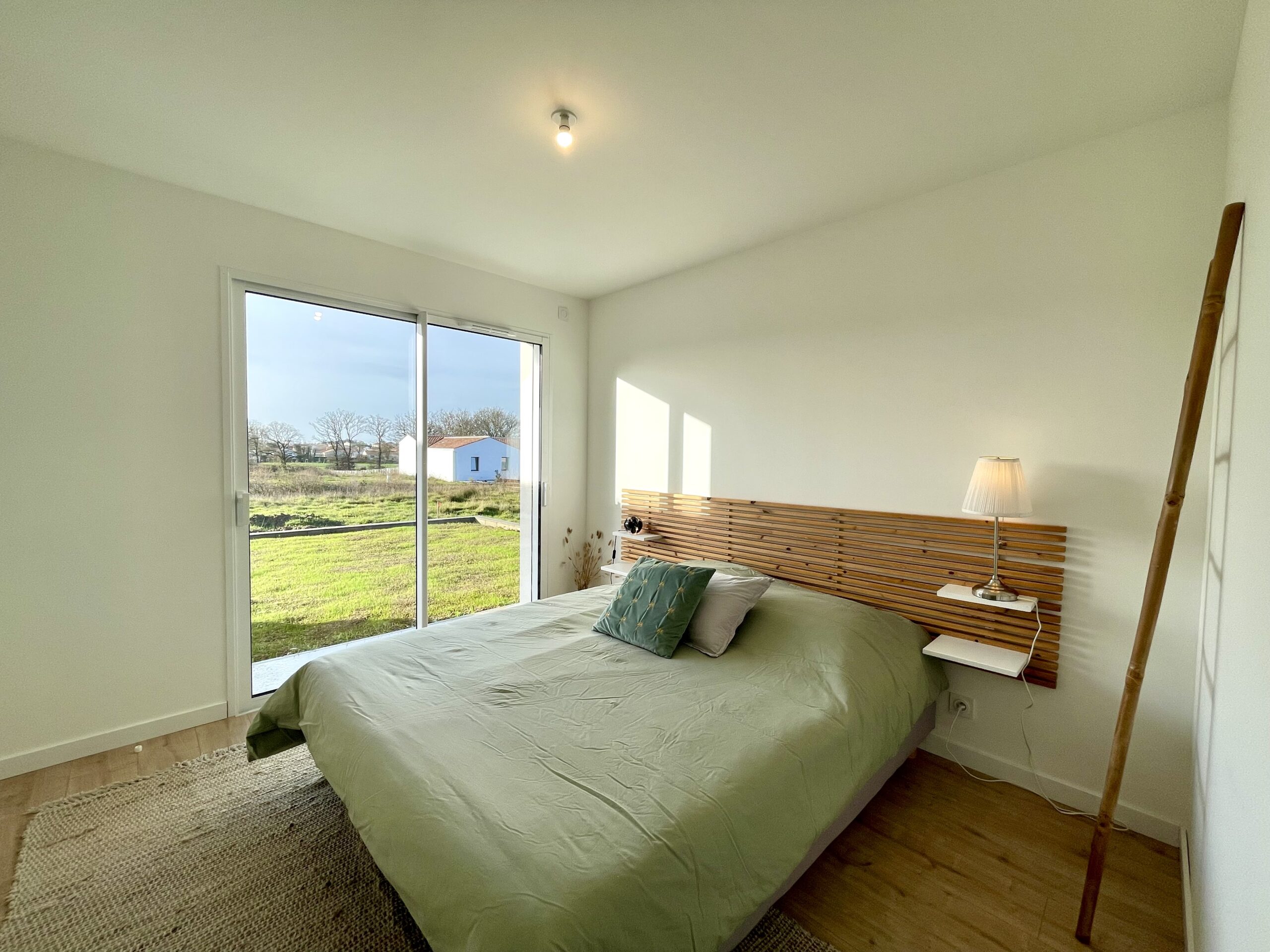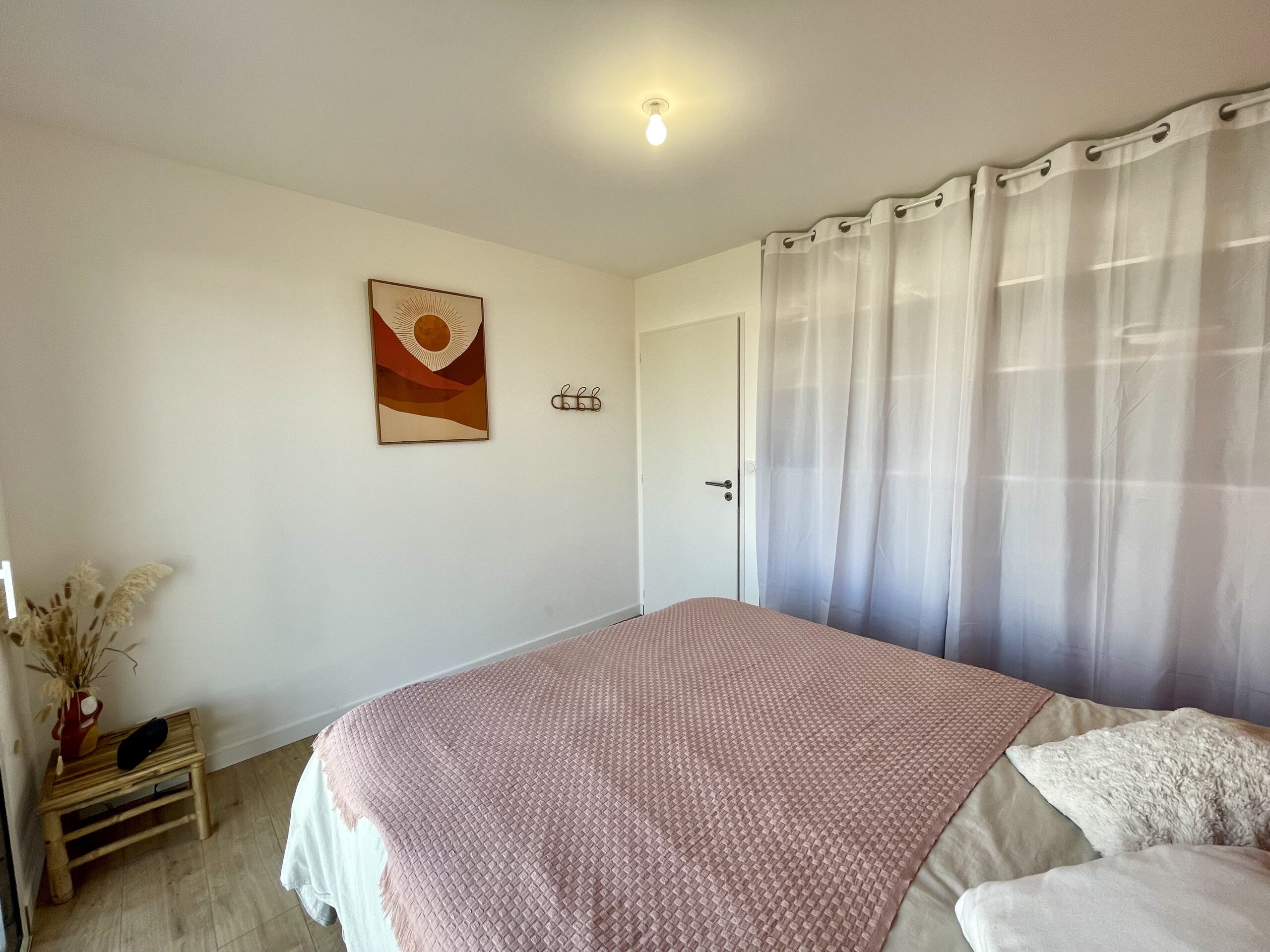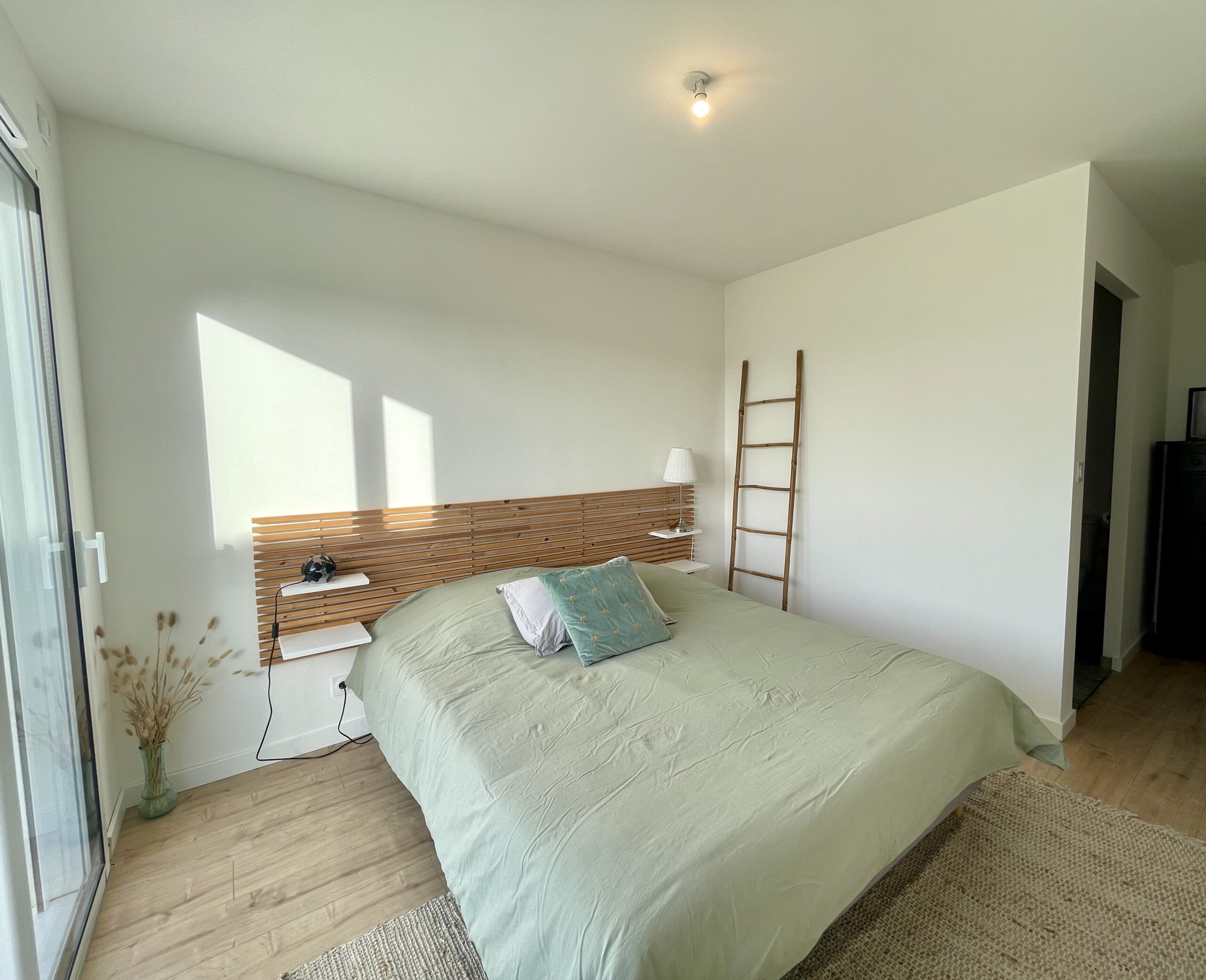 Chambre n°2: un lit double (160 x 200) + rangement de type dressing. Accès à la terrasse depuis la chambre.