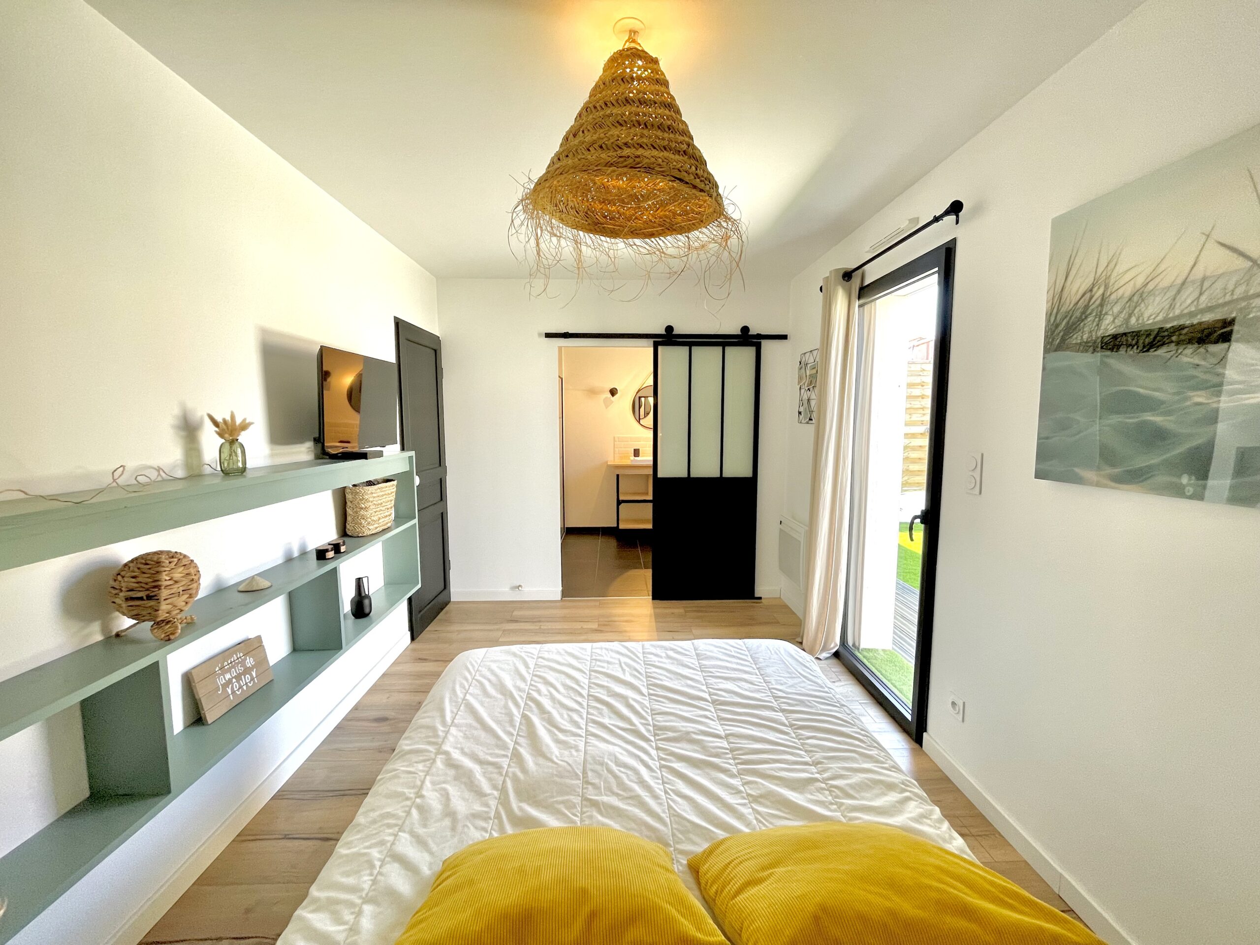 Située à seulement 400 mètres de la magnifique plage des Dunes, cette maison de vacances vous accueille dans un cadre paisible et chaleureux. Vous y trouverez tout le confort nécessaire pour un séjour agréable en duo, avec une décoration soignée mêlant charme et modernité.