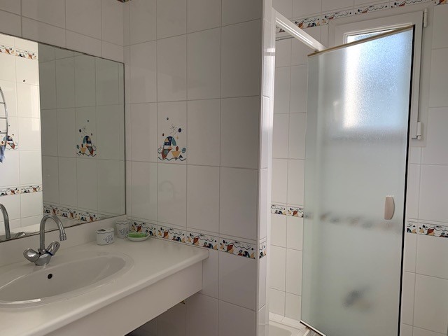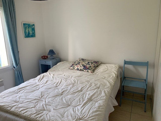 A mi-chemin de la plage et du centre ville, jolie maison de pays de type 3 comprenant une entrée directe dans le séjour/salon (table, chaises, buffet, canapés, TV, lecteur DVD) ouvert sur terrasse arrière, un coin-cuisine (réfrigérateur-freezer, plaque gaz 4 feux, four et lave-vaisselle), dégagement avec placard, 2 chambres, une salle d’eau (douche, vasque, rangements) et un toilette séparé.