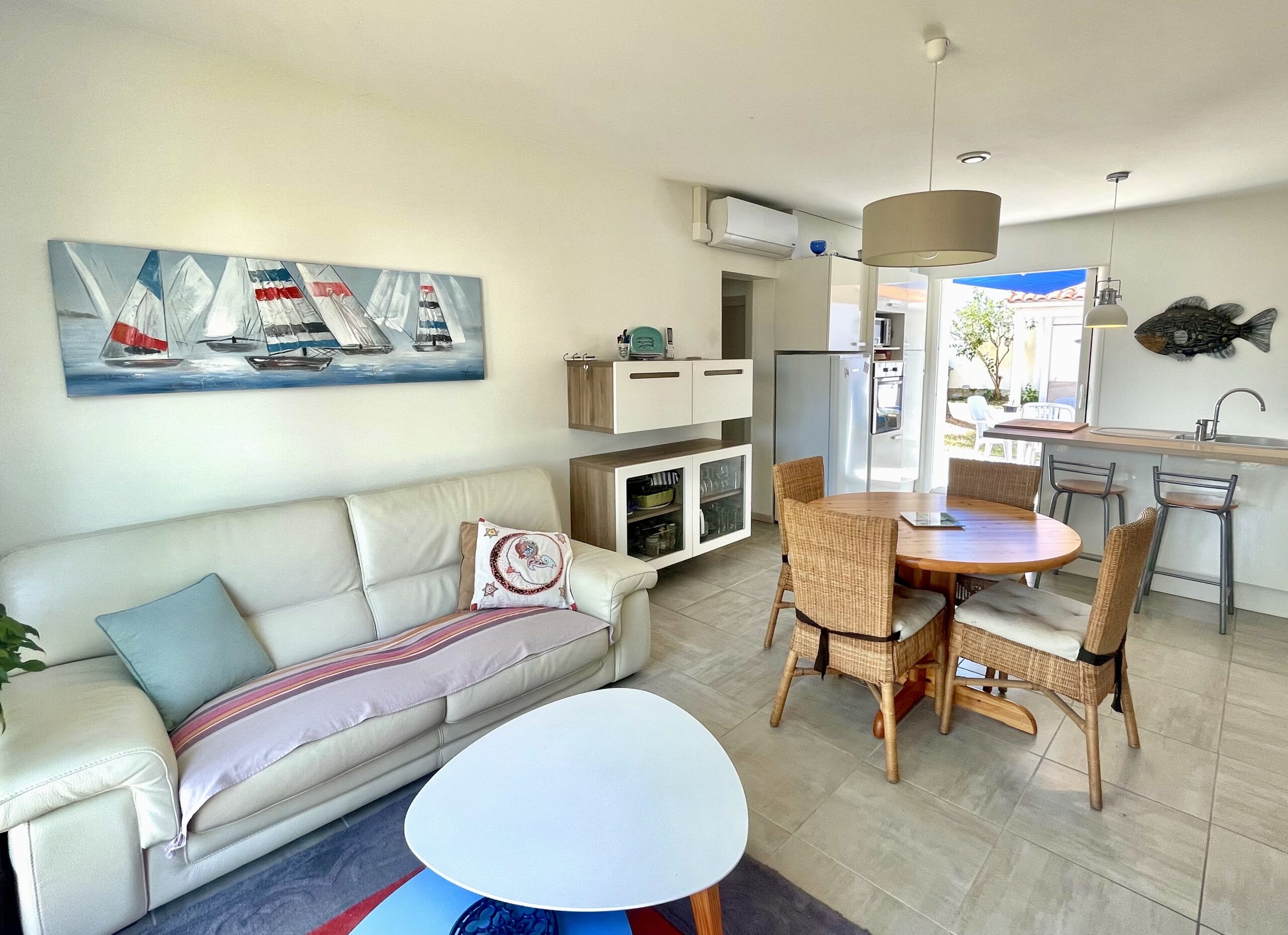 Dans la pièce de vie, vous pourrez profiter de la climatisation.
