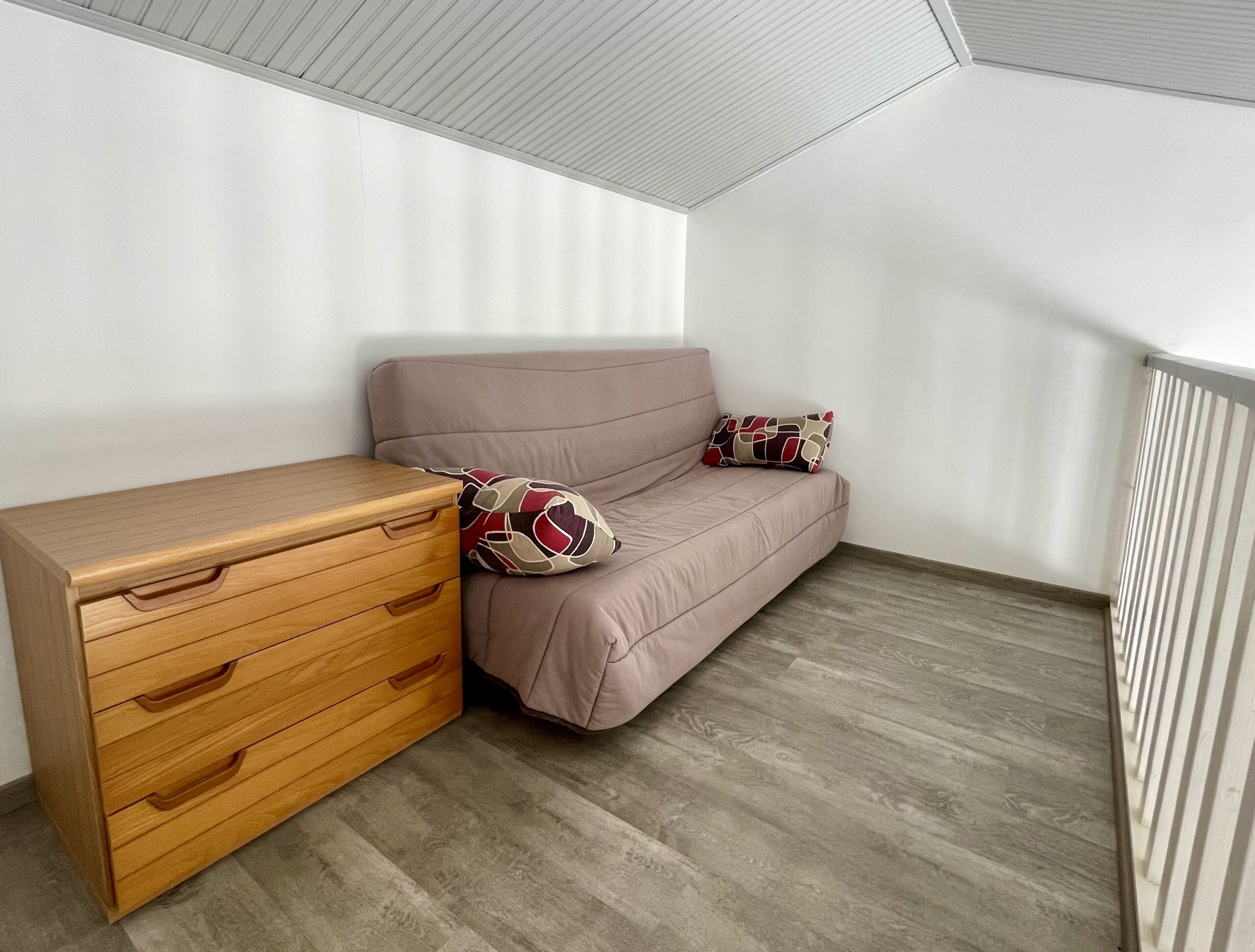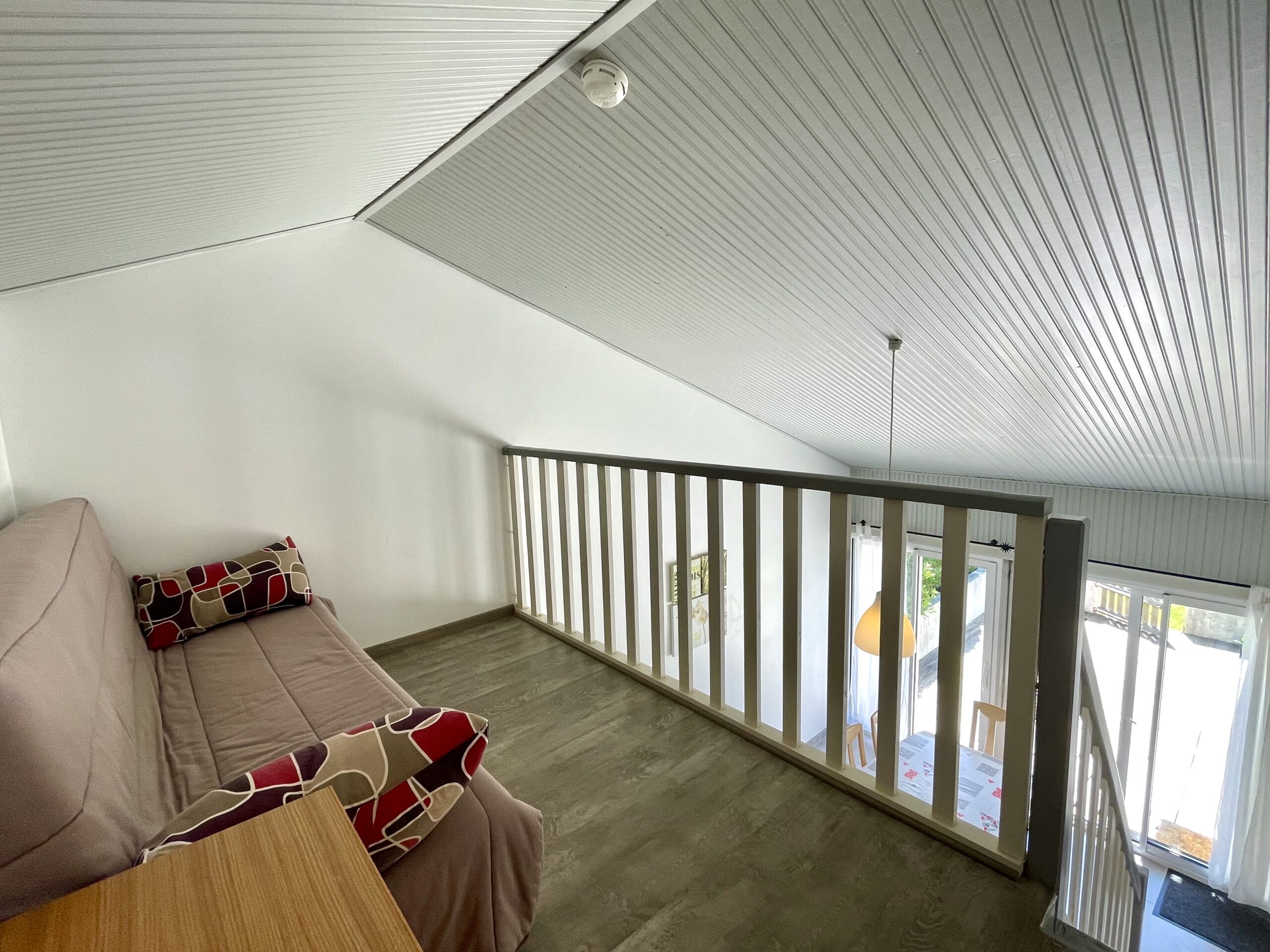A L’ETAGE : une mezzanine ouverte sur le séjour avec un BZ + une commode.