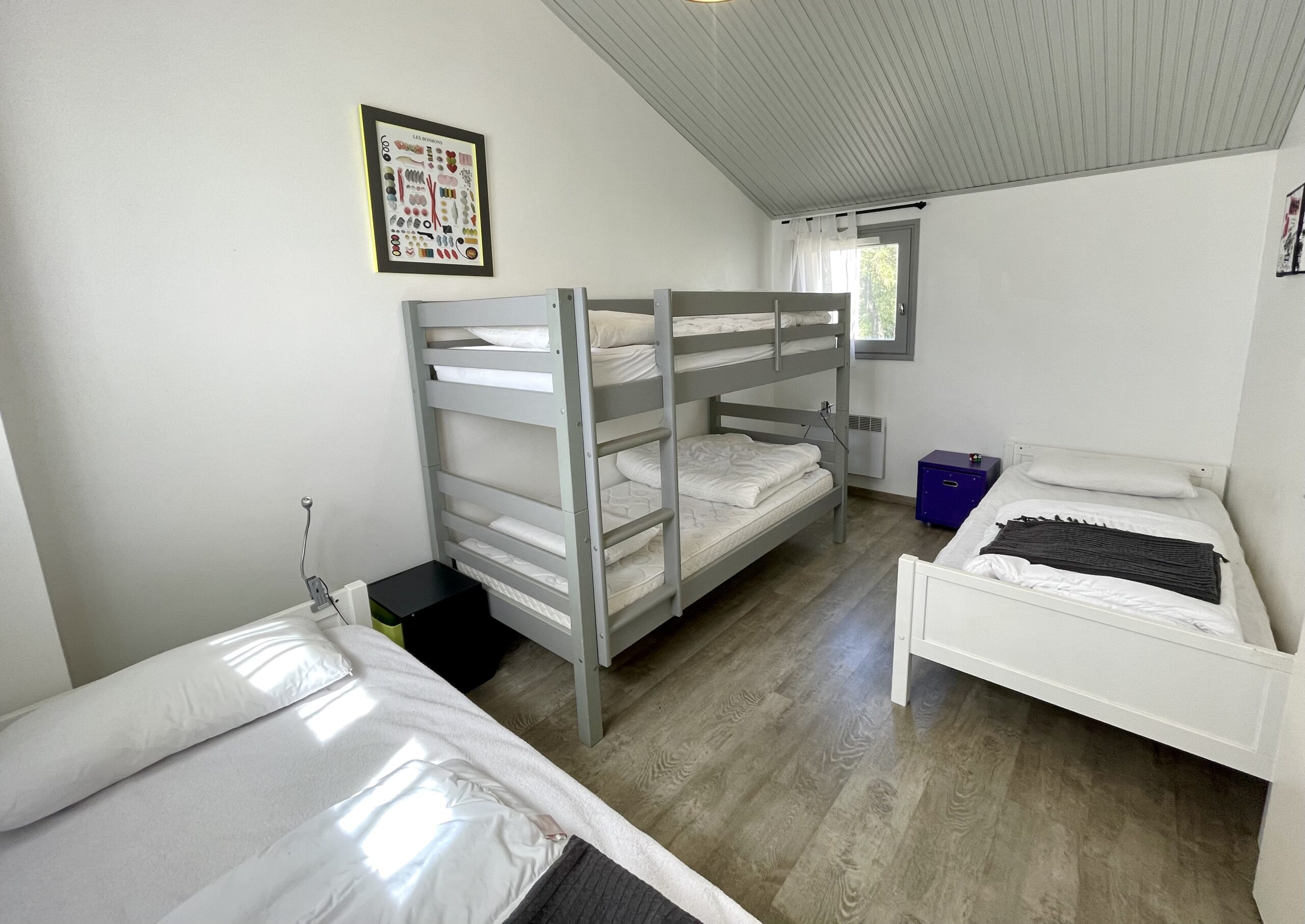 Une deuxième chambre: 2 lits simples (90) et 1 lit superposé (2x 90).
