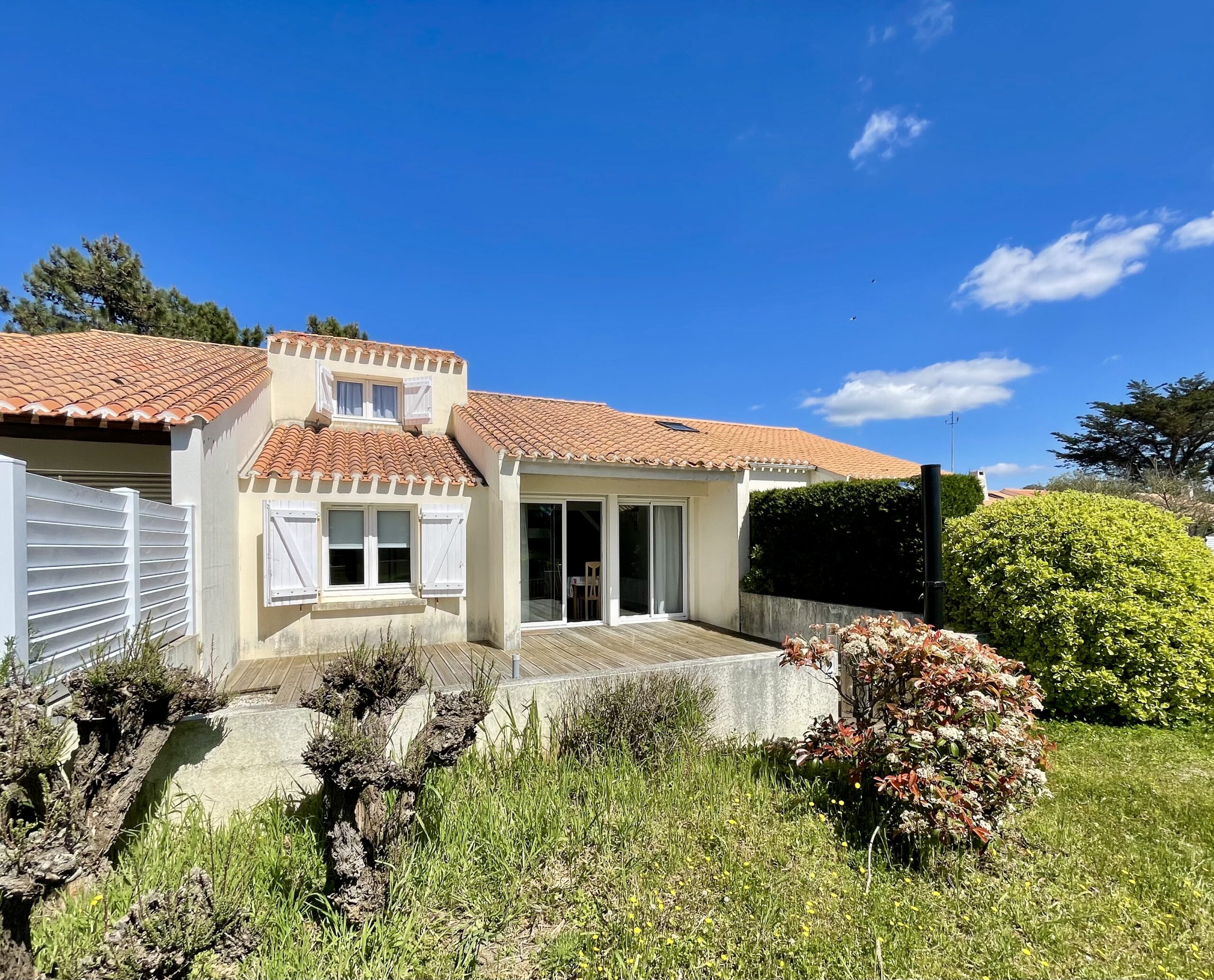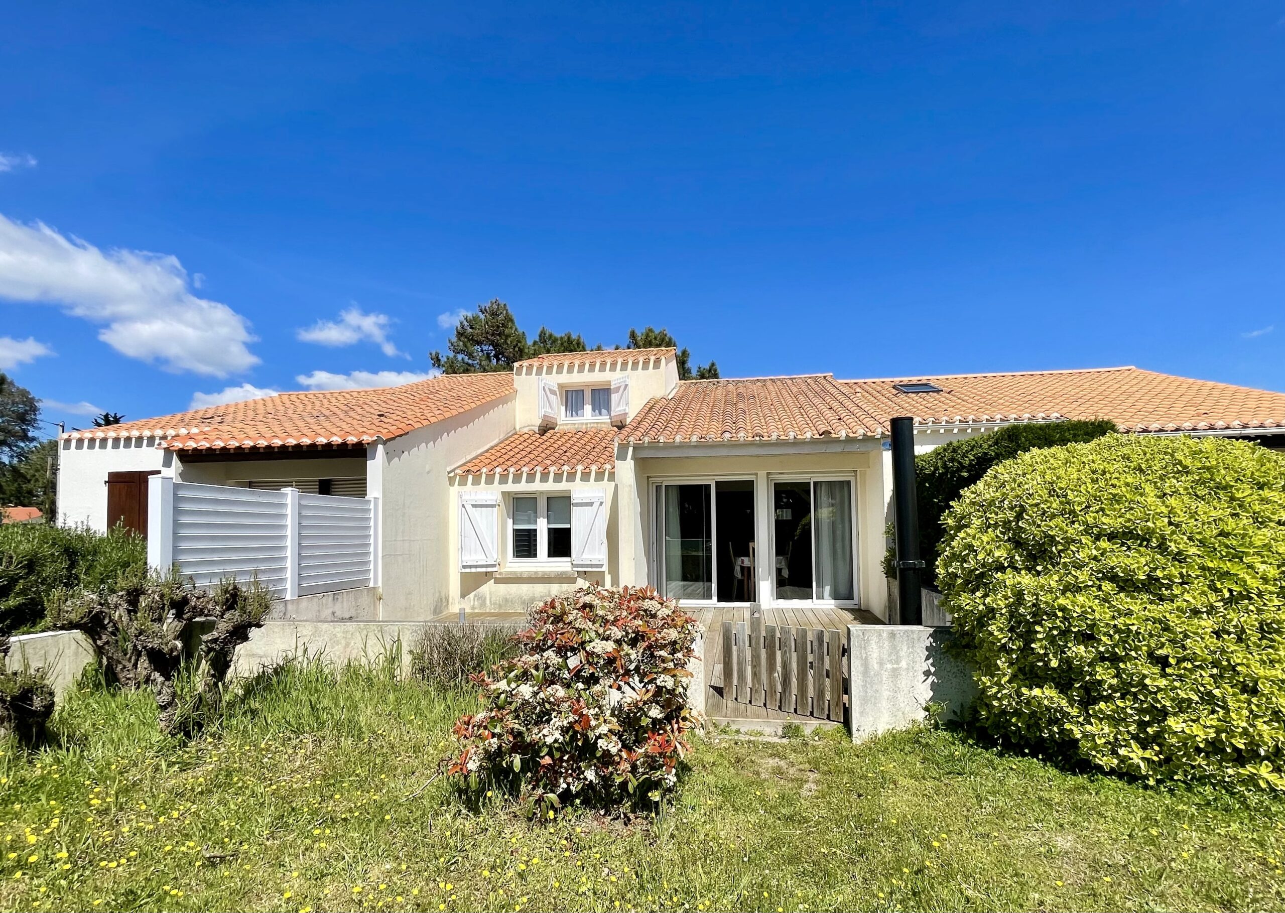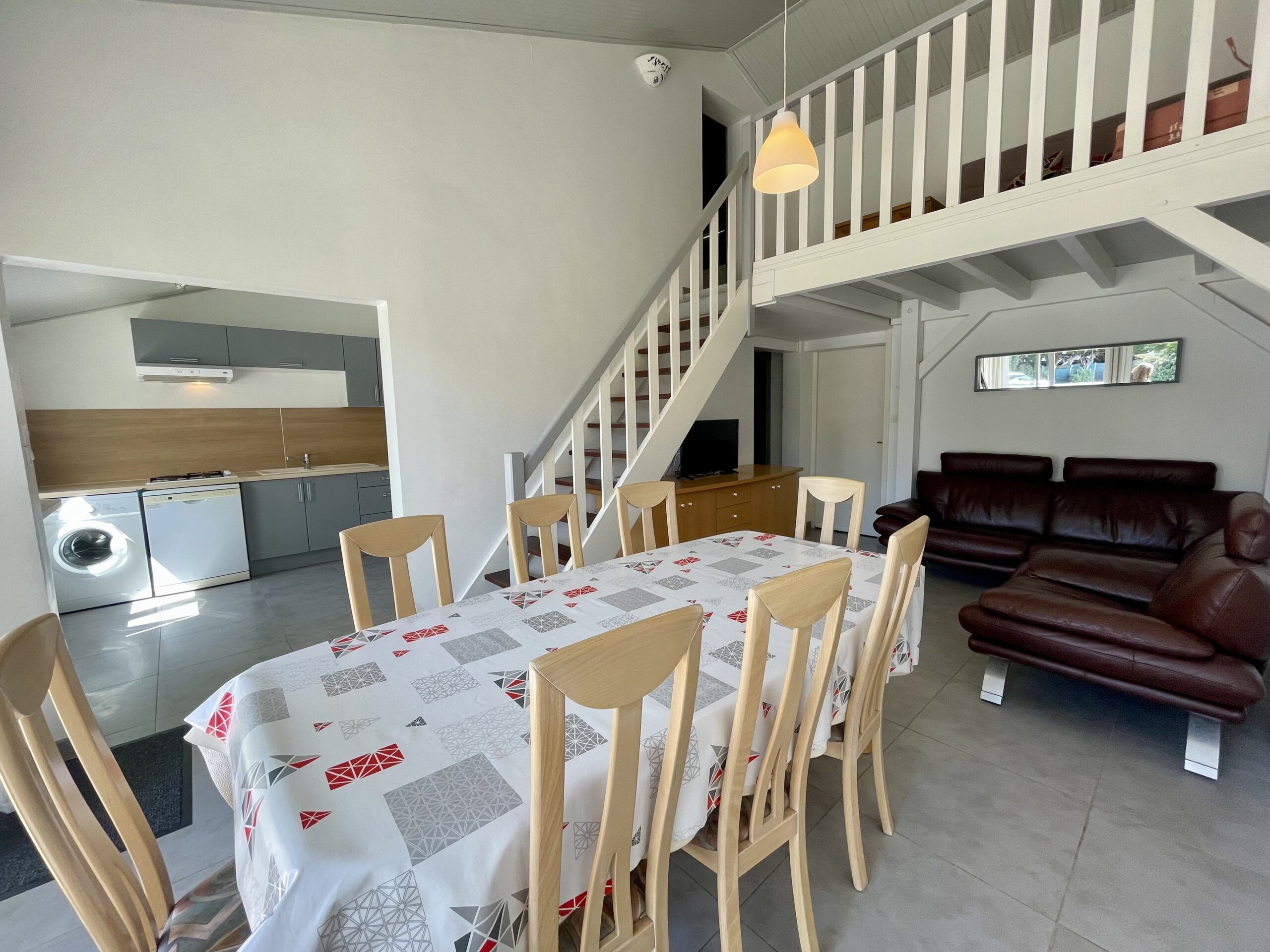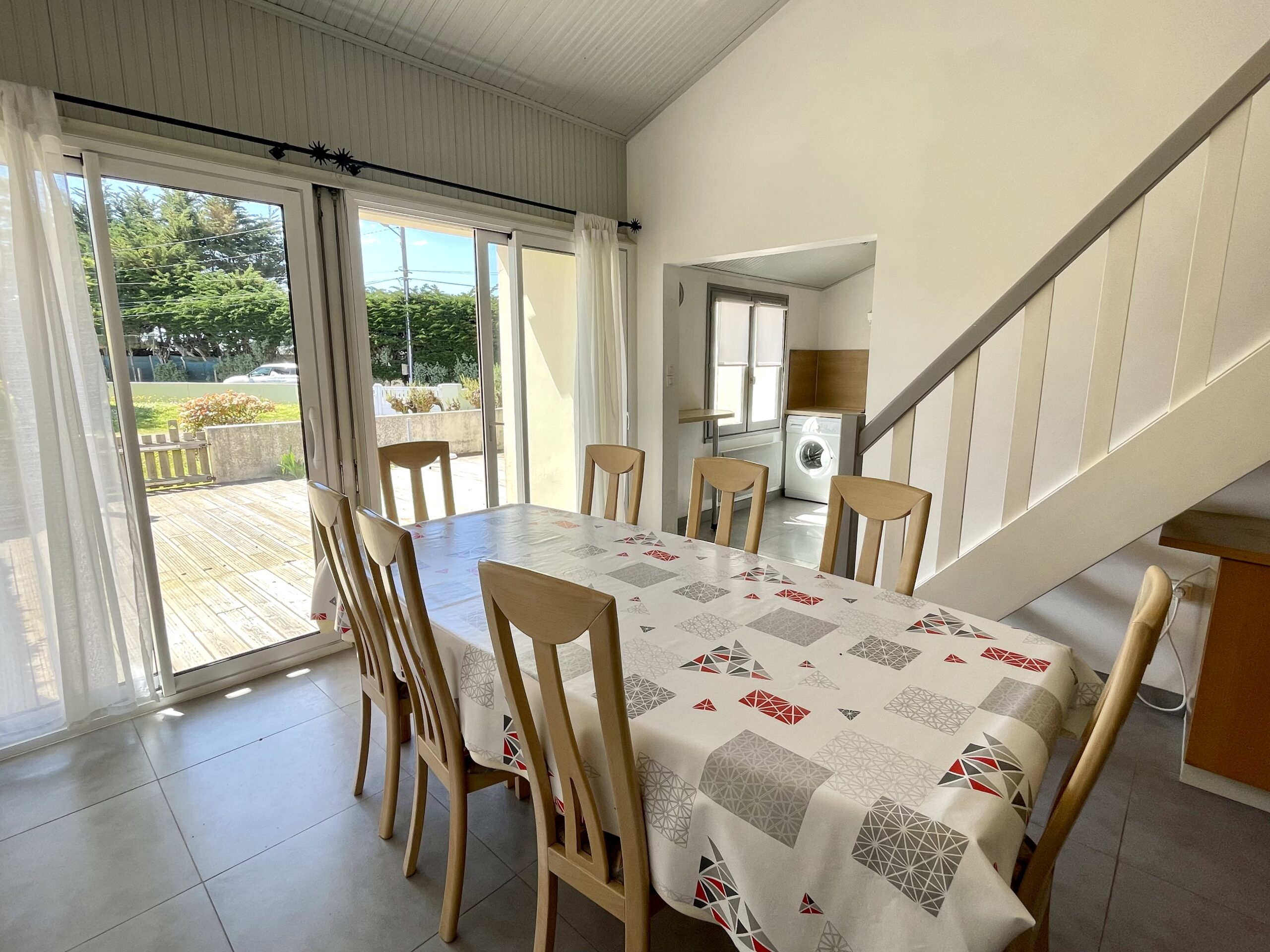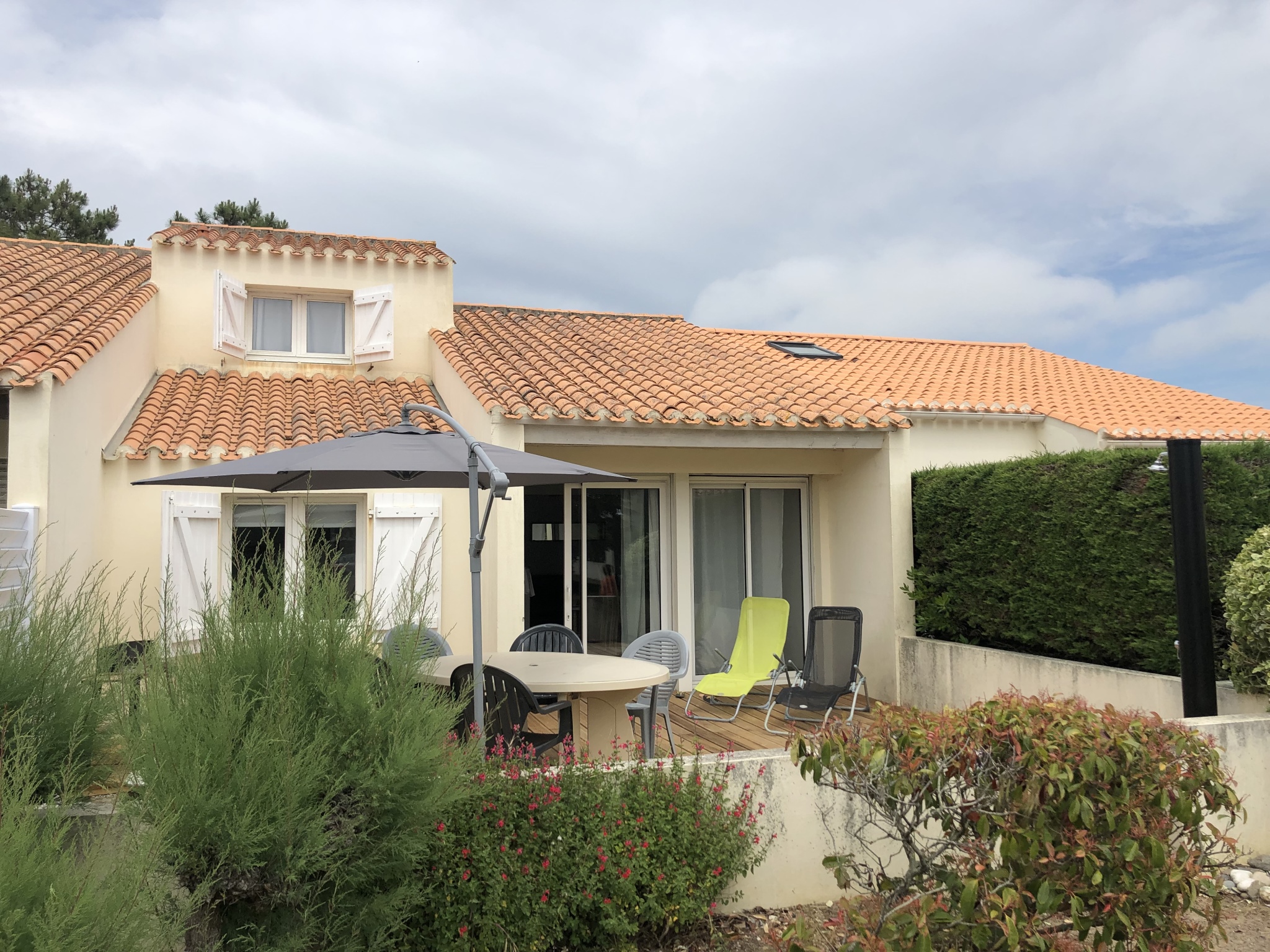 A 300m de la belle plage des Dunes, dans une petite résidence, maison de type 3 + mezzanine comprenant un séjour/salon (canapé, fauteuil, TV écran plat + DVD) et une cuisine aménagée et équipée (3 feux gaz + 1 pl. électrique, micro-ondes multifonctions, lave-vaisselle, lave-linge, réfrigérateur-congélateur).