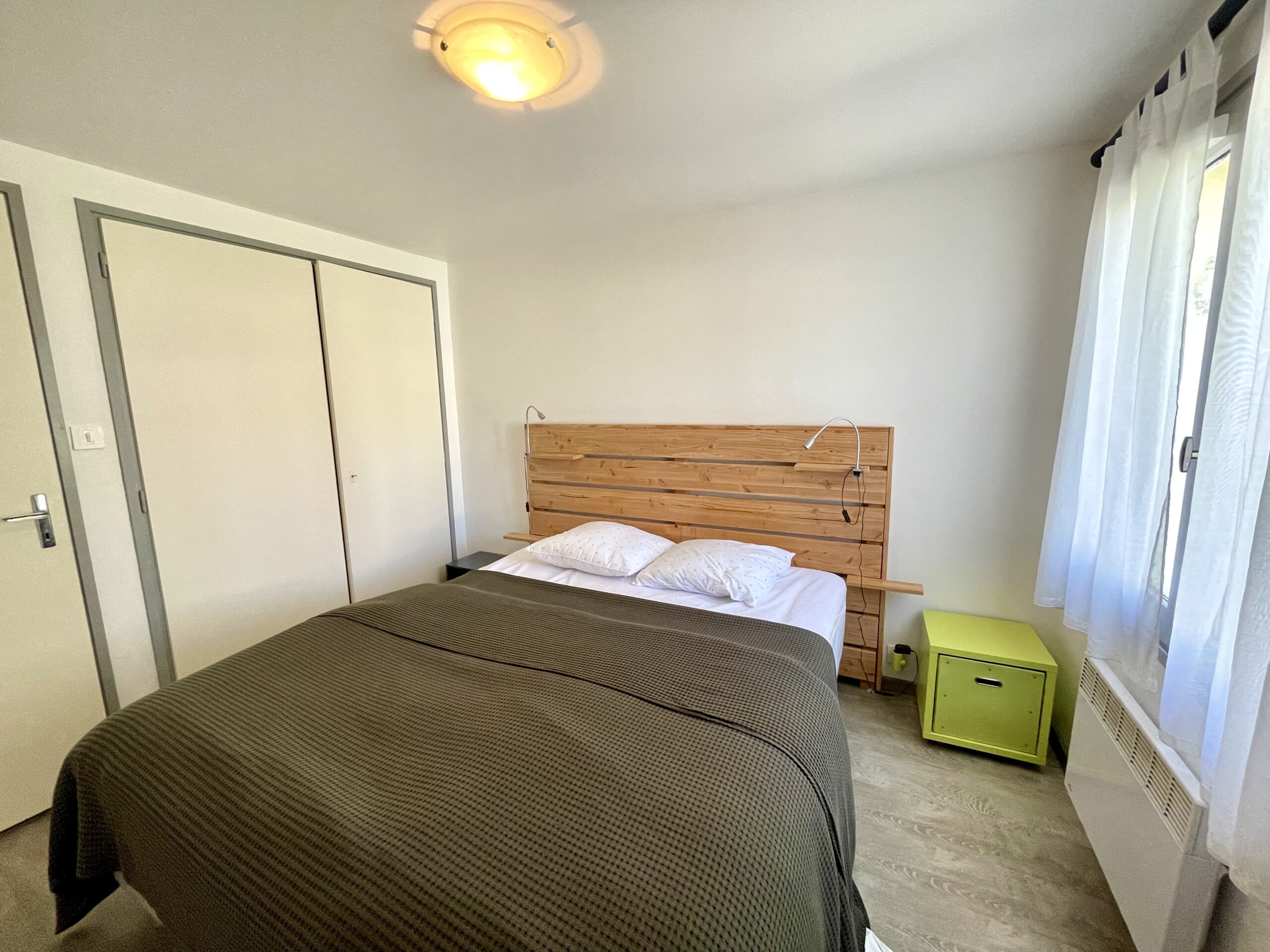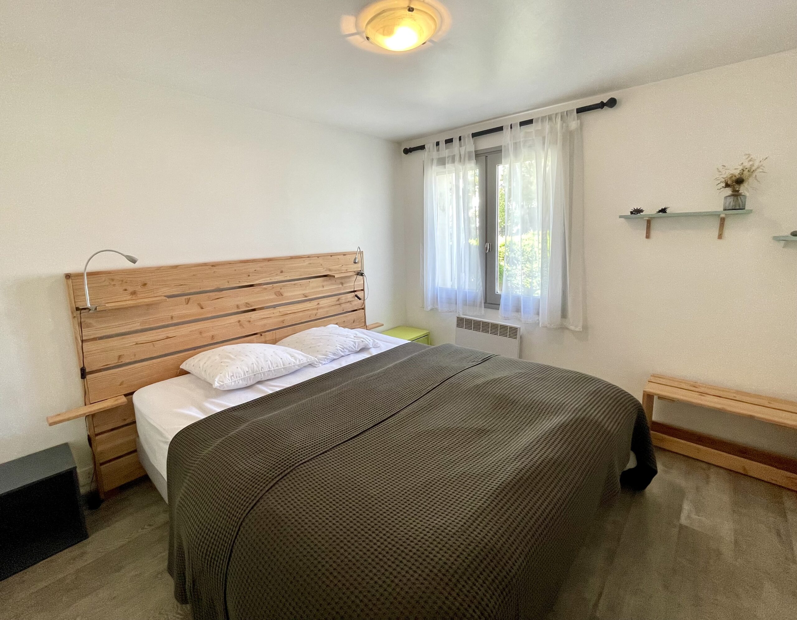 Chambre n°1 (rez-de-chaussée): lit double (160) + placard.