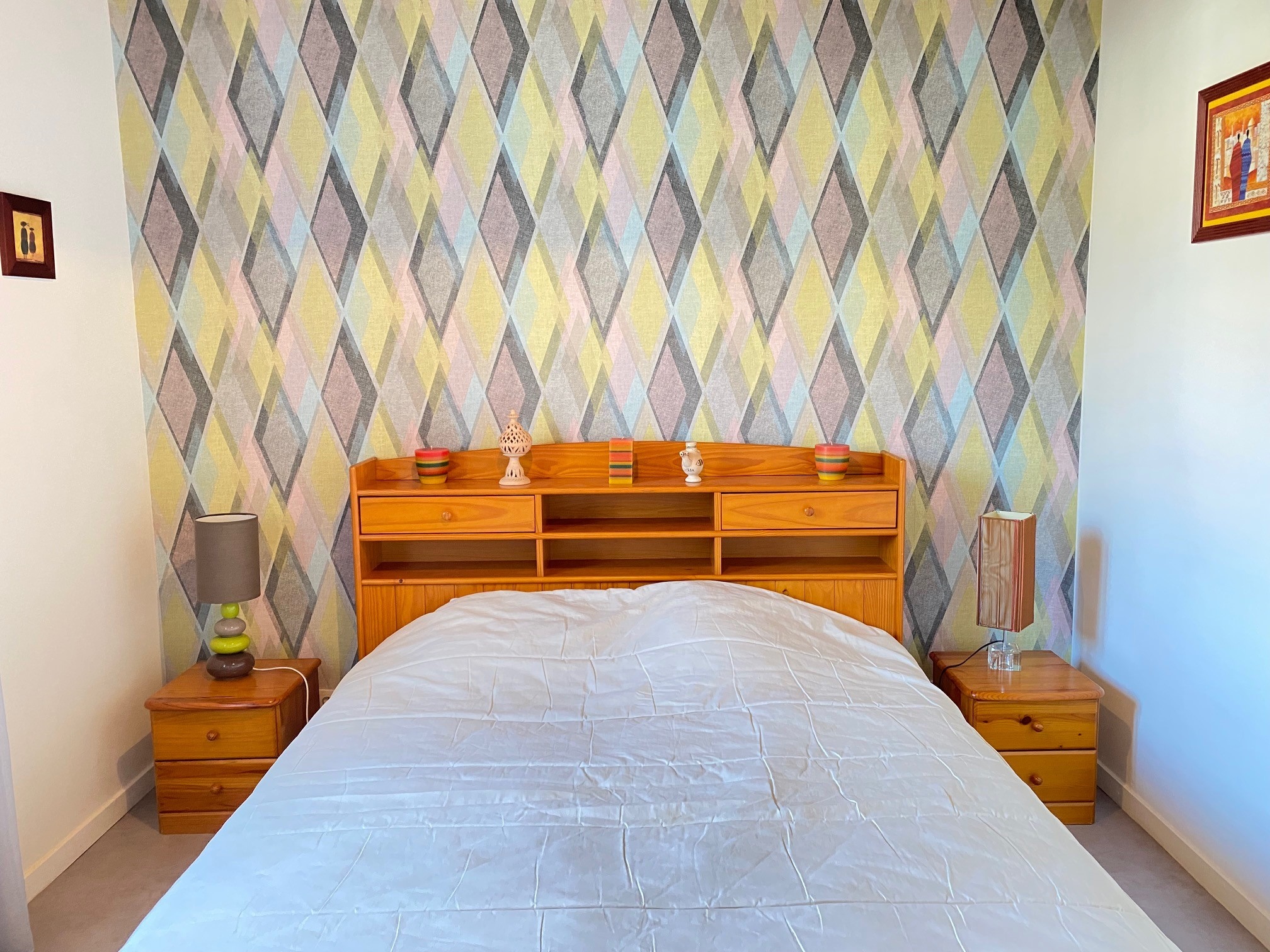 Au rez-de-chaussée, une chambre avec un lit double (160) + placard et une salle d’eau avec WC.