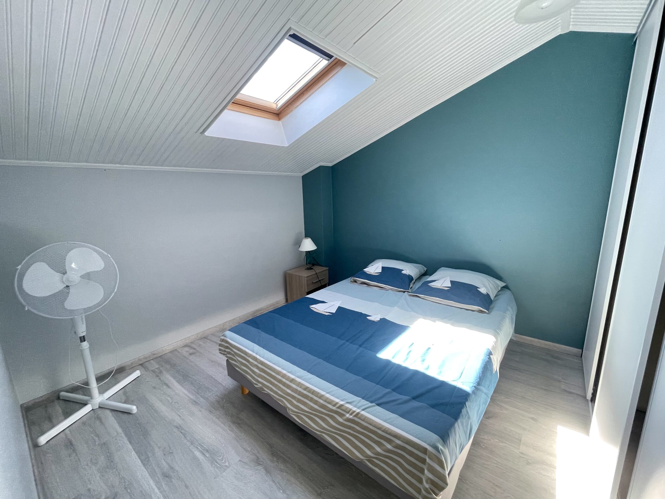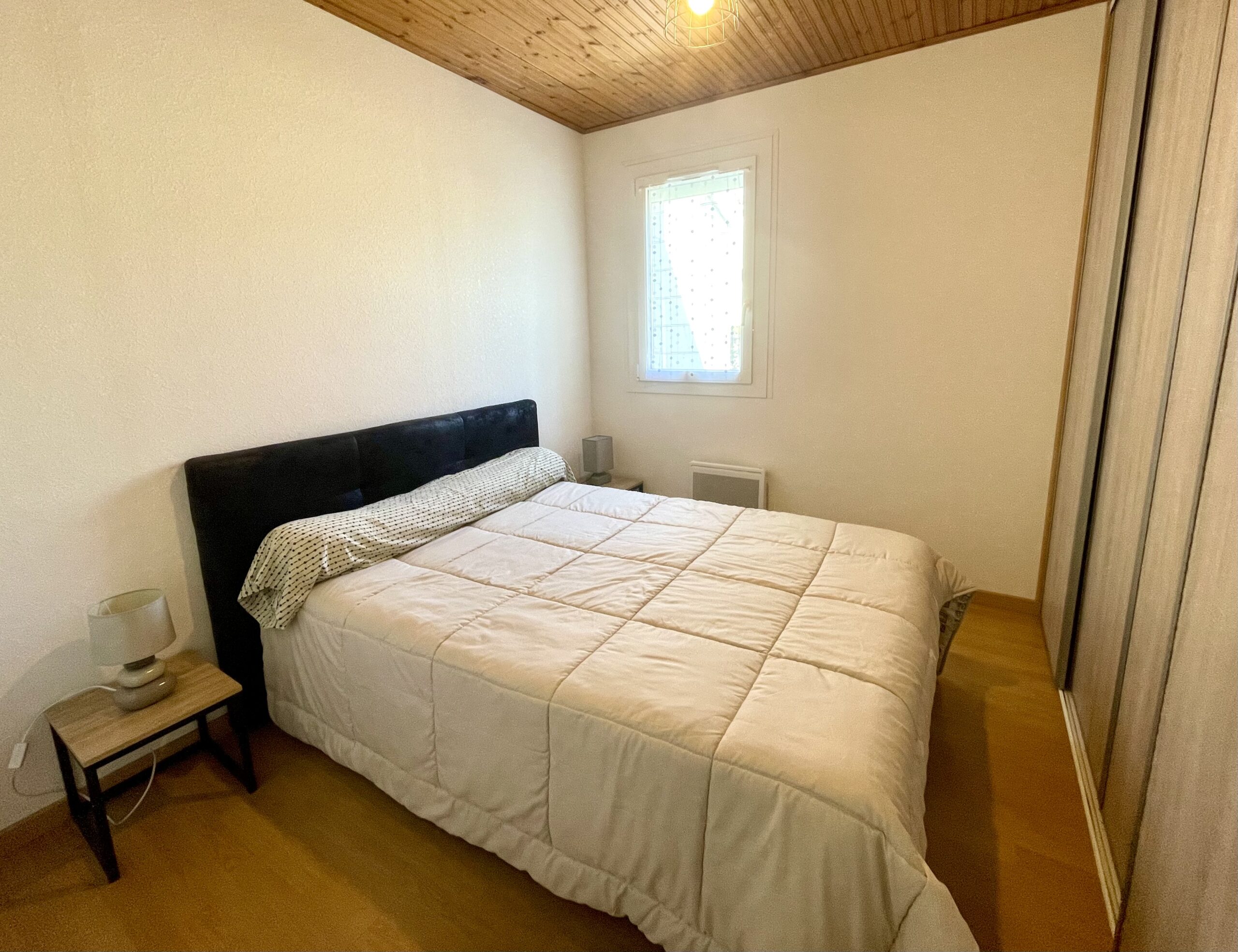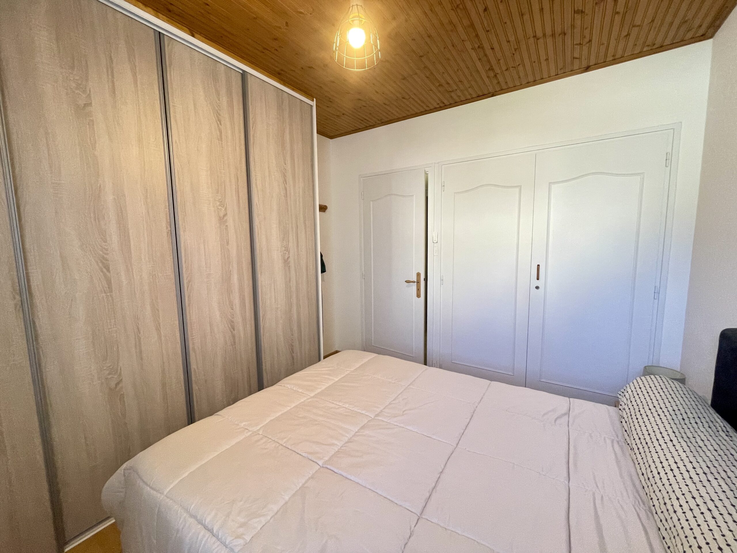 Chambre n°1 (rez-de-chaussée): lit double (140) + placard.