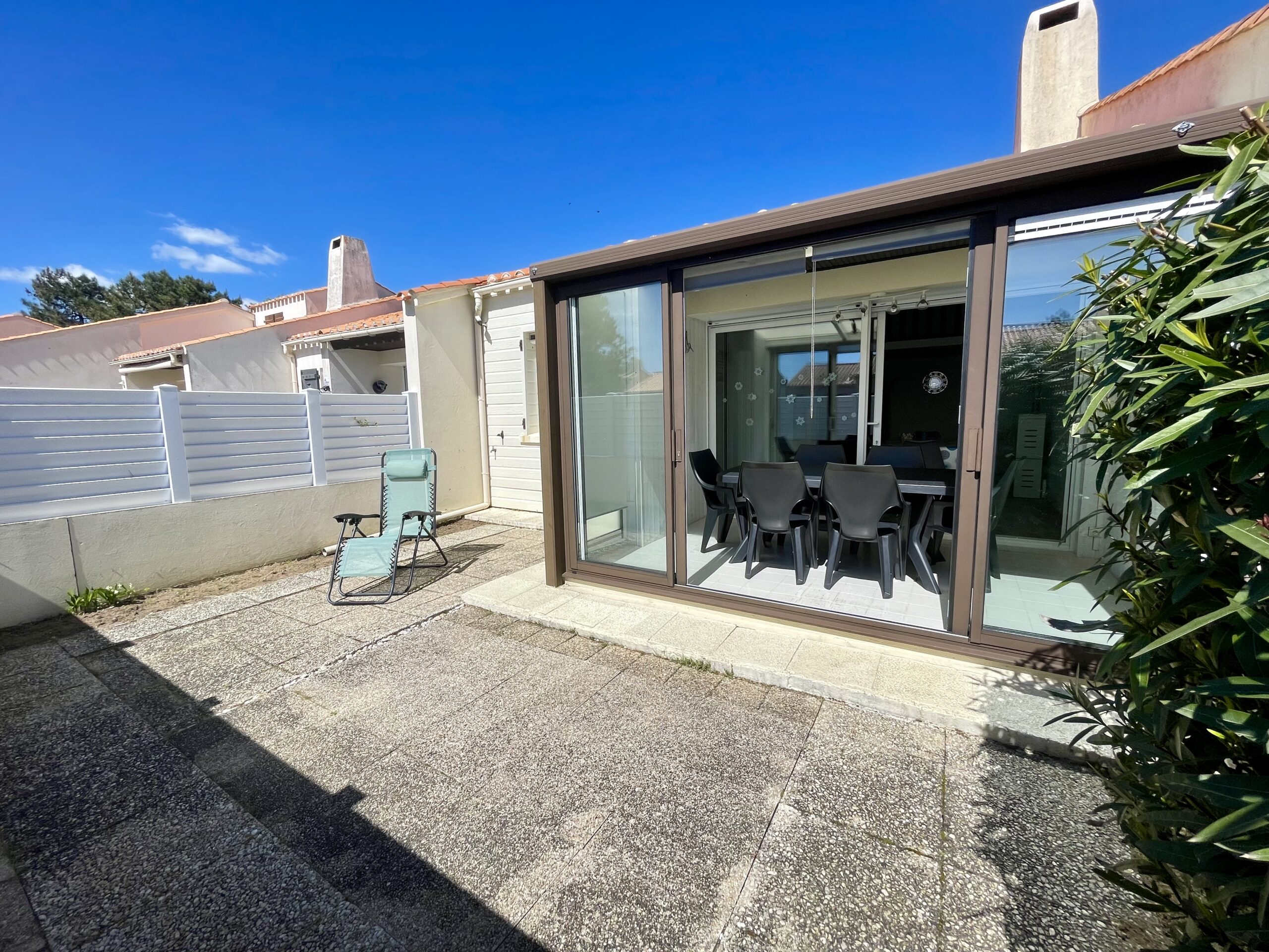 Vous apprécierez: le confort et les équipements de la maison, le calme d’une petite résidence, l’agréable véranda pour y prendre vos repas par tous temps et surtout de pouvoir aller à pied à la plage des Dunes (à seulement 300m).
