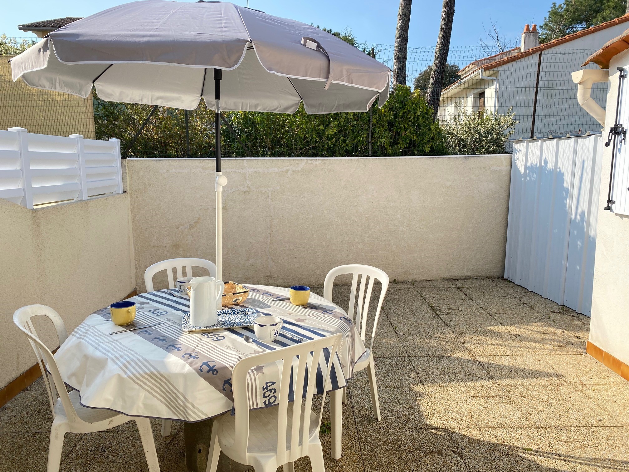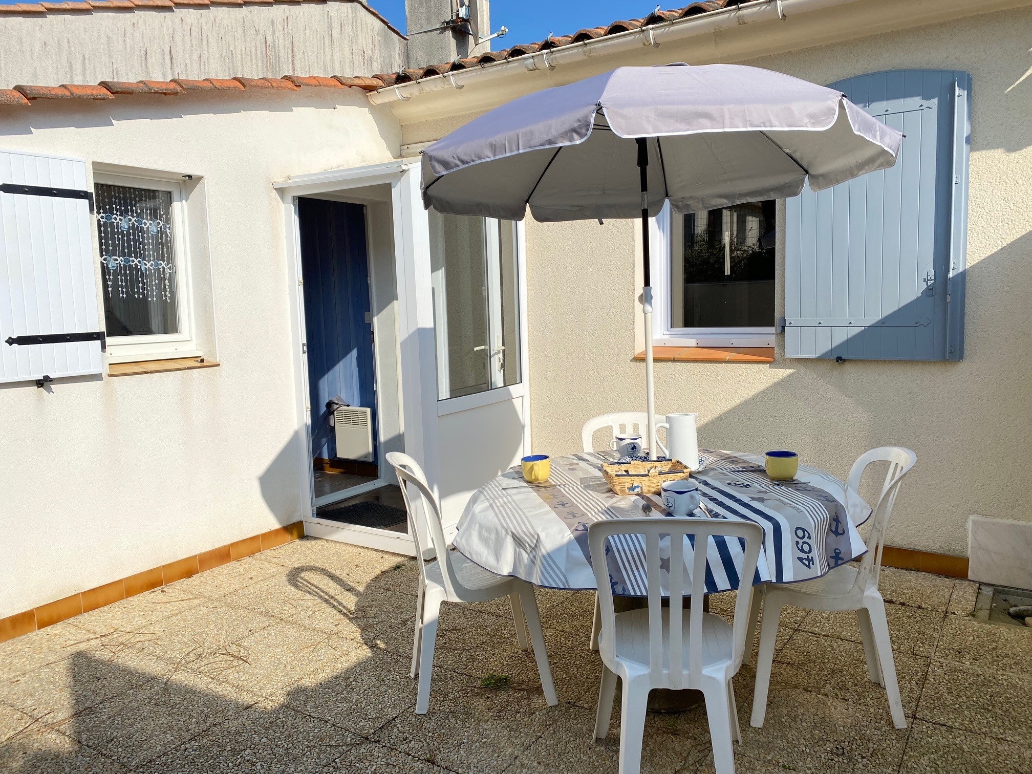 A 800 m de la belle plage des Dunes, maison de vacances jumelée avec 2 courettes privatives (à l’avant ainsi qu’à l’arrière) comprenant une entrée directe dans pièce de vie avec coin repas et coin repos (table, 4 chaises, buffet, canapé BZ, TV sur petit meuble), un coin cuisine (frigo avec partie congélation, micro-ondes, minifour, lave-linge, plaque de cuisson 4 feux gaz), une salle d’eau (douche, lavabo, rangements), toilette indépendant.
