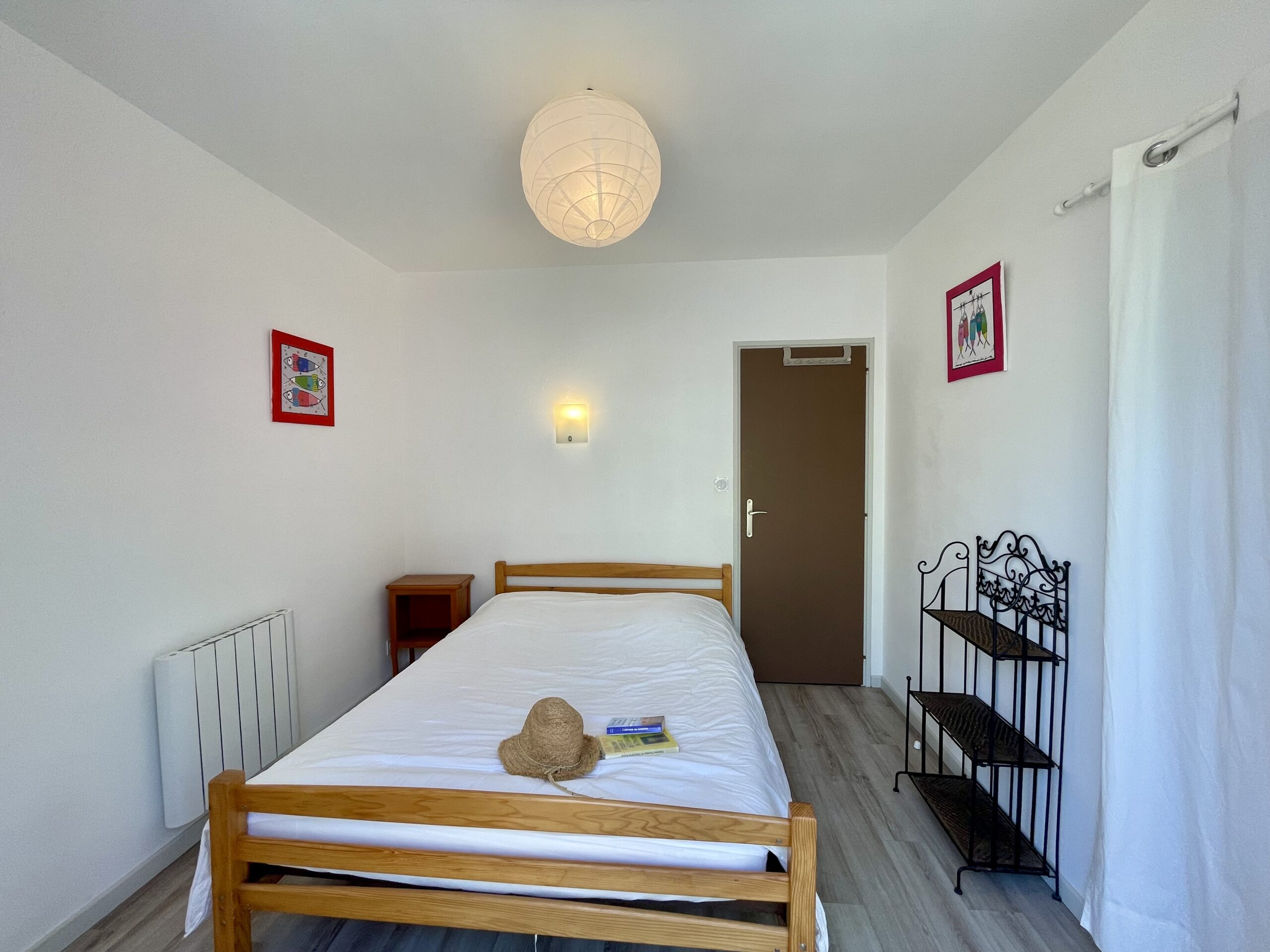 Chambre n° 2: 1 lit double (140) + 1 lit simple (90) + placard.