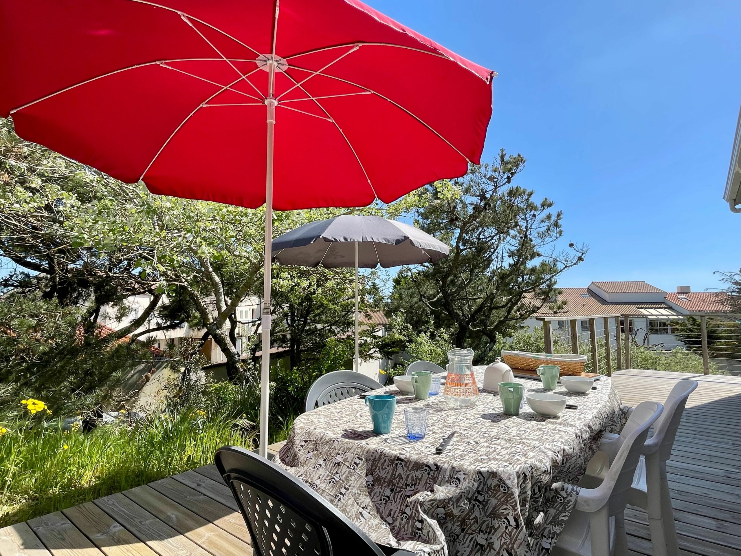 Vous apprécierez: l’agencement de la maison avec ces 2 espaces de vie distincts mais qui permettent malgré tout de réunir une belle famille, les différentes terrasses pour prendre vos repas ou « chiller » sur les bains de soleil et bien sûr, l’emplacement idéal à seulement 300m de la plage, des restaurants et aire de jeux du Marais Girard.