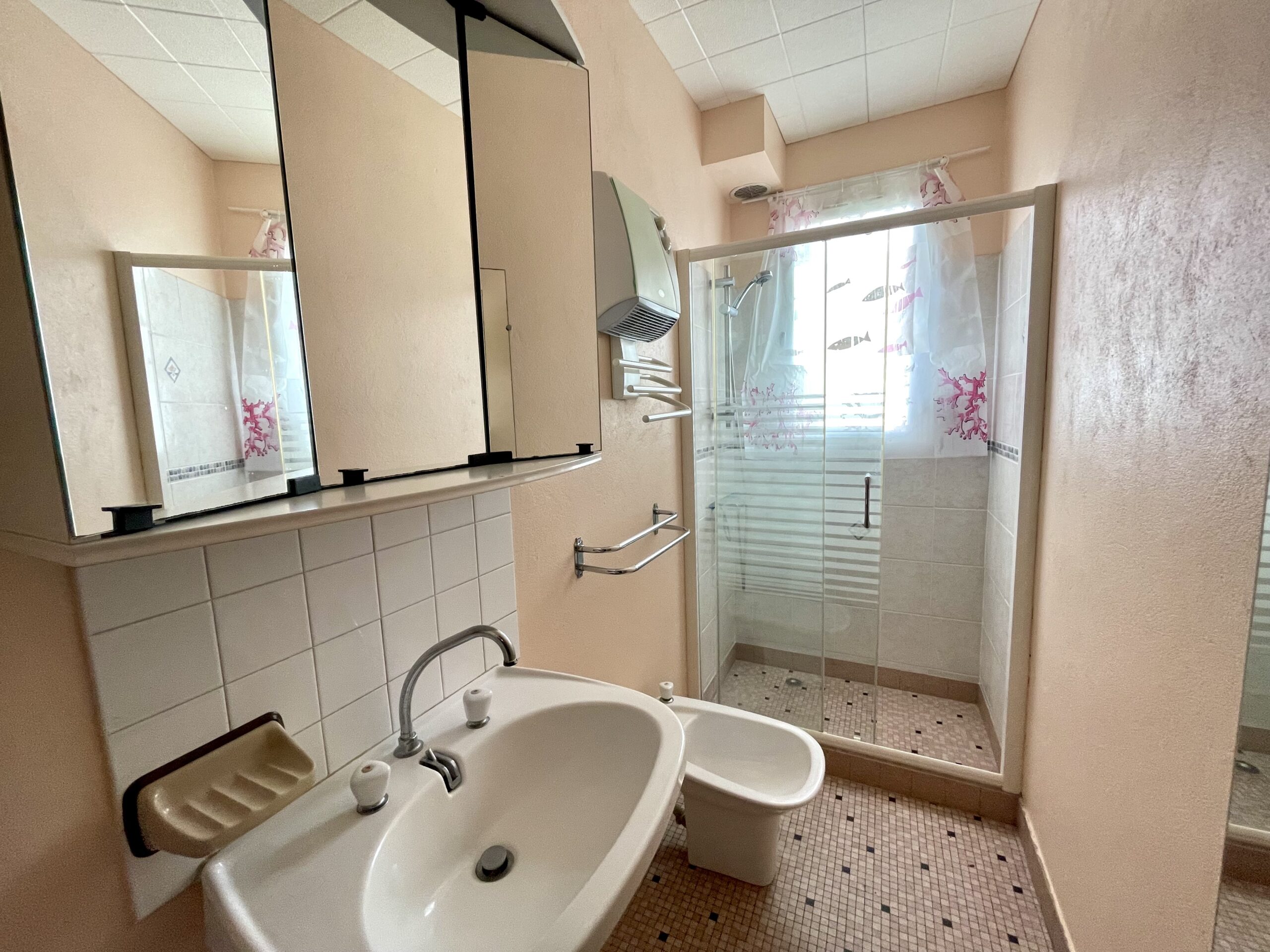Une salle d’eau (douche et lavabo) et toilettes séparés.